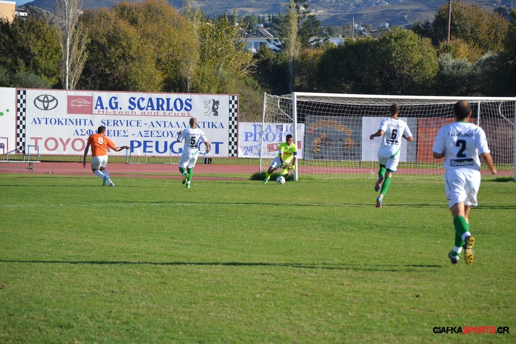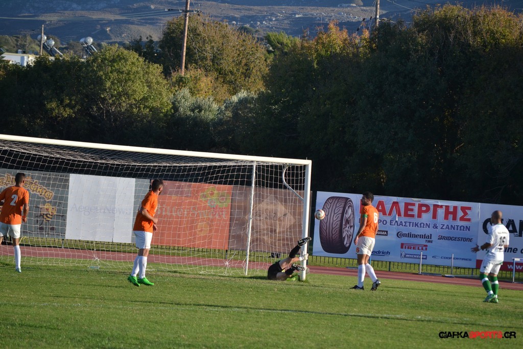 28′ Ο Αρκούδας εκτέλεσε το φάουλ από τα δεξιά, η μπάλα κατέληξε στον Μαρίνο ο οποίος από κοντά έκανε το σουτ με την μπάλα να κοντράρει στα σώματα και τους αμυντικούς της Α.Ε Λέρου στη συνέχεια να απομακρύνουν.