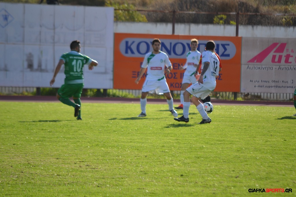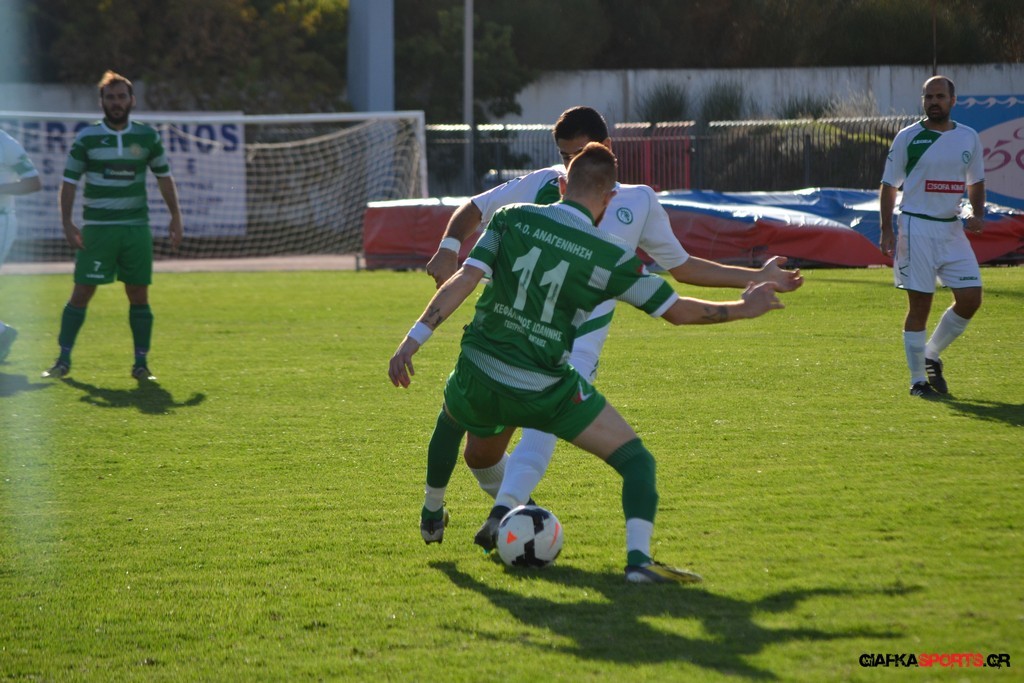 Το πρώτο ημίχρονο ήταν κακό ποιοτικά αφού οι δύο ομάδες δεν είχαν καλή κυκλοφορία απ’ την μέση και μπροστά και οι δύο φάσεις που σημειώθηκαν ήταν ένα δυνατό σουτ του Τσιφτσίδη από πλευράς Ανταγόρα και ένα του Νίκου Θεοδώρου απ’ την Αναγέννηση για να πάνε οι δύο ομάδες στα αποδυτήρια χωρίς τέρματα.