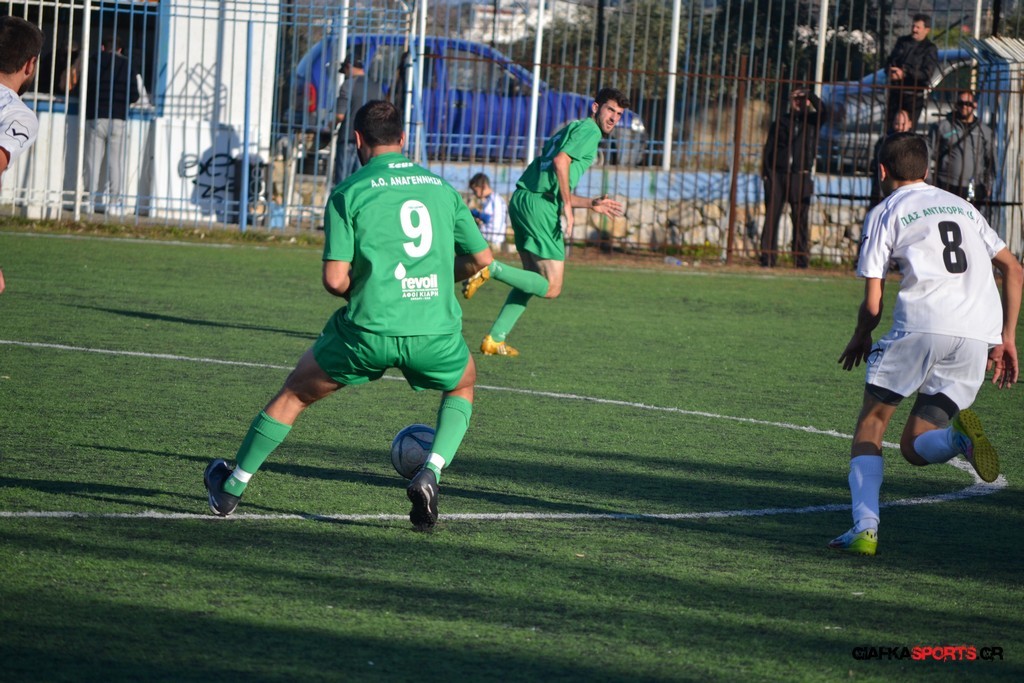 Με το καλημέρα ο Βογιατζής ”σόκαρε” τον Ανταγόρα και έδωσε το προβάδισμα μόλις στο 2′ στην Αναγέννηση Ασφενδιού μιας και η εκτέλεση φάουλ που έκανε πέρασε από τους πάντες, μπέρδεψε τον Κονταντώνη και κατέληξε στα δίχτυα για το 1-0. Από εκείνο το σημείο και μετά ο Ανταγόρας άρχισε να πιέζει με τον Τσιφτσίδη να δέχεται την πάσα από τον Καμπουράκη στο 8′,αλλά το σουτ του να περνάει λίγο έξω από το δεξί κάθετο δοκάρι του Χατζηβασίλη. Στο 12′ ο Σακαντάρης προσπάθησε να ανεβάσει τον δείκτη του σκορ στο 2-0,αλλά η απευθείας εκτέλεση φάουλ που εκτέλεσε πέρασε ελάχιστα έξω από το αριστερό παραθυράκι του Κονταντώνη.