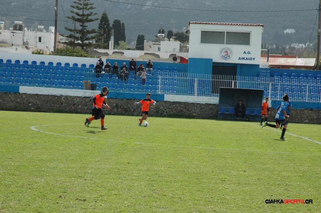 Σε ένα πολύ όμορφο παιχνίδι που διεξήχθη στο γήπεδο Πυλίου, Α.Ο Δικαίου και Α.Ο Αθλοπαιδιών Κω 2 ήρθαν ισόπαλοι (1-1) για το παιδικό πρωτάθλημα του Ομίλου νήσων.. Δείτε φωτογραφικό υλικό αλλά και βίντεο με τις φάσεις και τα γκολ του παιχνιδιού.