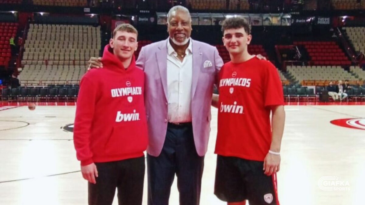 Λίγο πριν το τζάμπολ, τον περίμενε μια ευχάριστη έκπληξη. Ο σπουδαίος παλαίμαχος είχε την ευκαιρία να συνομιλήσει με τα αδέρφια Χριστοδούλου, τον Μπάμπη και τον Γιώργο, δείχνοντας έντονο ενδιαφέρον για την πορεία τους στον χώρο του μπάσκετ και ρωτώντας για τα επόμενα βήματά τους.