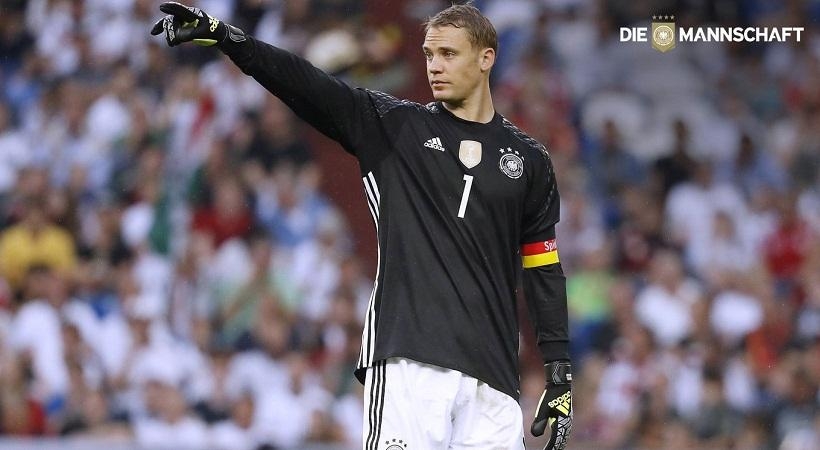 O τερματοφύλακας των Γερμανών επιλέχθηκε από τον Σεμπάστιαν Λεβ, ο οποίος δήλωσε για την επιλογή του: «Έχουμε πολλούς ηγέτες στην ομάδα, οι οποίοι είναι εξαιρετικά ικανοί για να είναι αρχηγοί. Για μένα ο Μάνουελ Νόιερ είναι o λογικός διάδοχος του Σβαϊνστάιγκερ. Έχει ό,τι μπορεί να θέλεις από έναν αρχηγός.