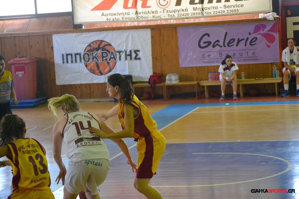 Έχοντας σε μεγάλη μέρα την Βικτώρια Γούναρη που σκόραρε 21 πόντους ο Ιπποκράτης επικράτησε με 61-54 του Άρη Πετρούπολης πέρασε στην προημιτελική φάση του κυπέλλου γυναικών και πήρε ρεβάνς για την περσινή του ήττα στον θεσμό του κυπέλλου απ’ τον Άρη Πετρούπολης. Παρόλο που πήγε να κάνει τα εύκολα δύσκολα η ομάδα του νησιού μας άντεξε στην πίεση της ομάδα του κυρίου Κάββουρα που έτρεχε ασταμάτητα και στο δεύτερο πίεζε σε όλο το γήπεδο και πήρε την πρόκριση. 18 πόντους πέτυχε η Σίντι που συστήθηκε με τον καλύτερο τρόπο στο κοινό της Κω ενώ η Άλφορντ πέτυχε 11 αλλά φαίνεται ότι θέλει χρόνο να βρει τα πατήματα της.