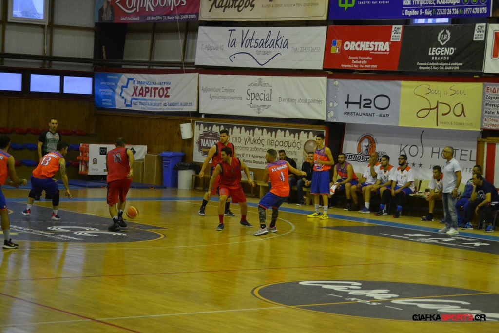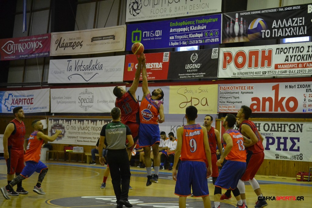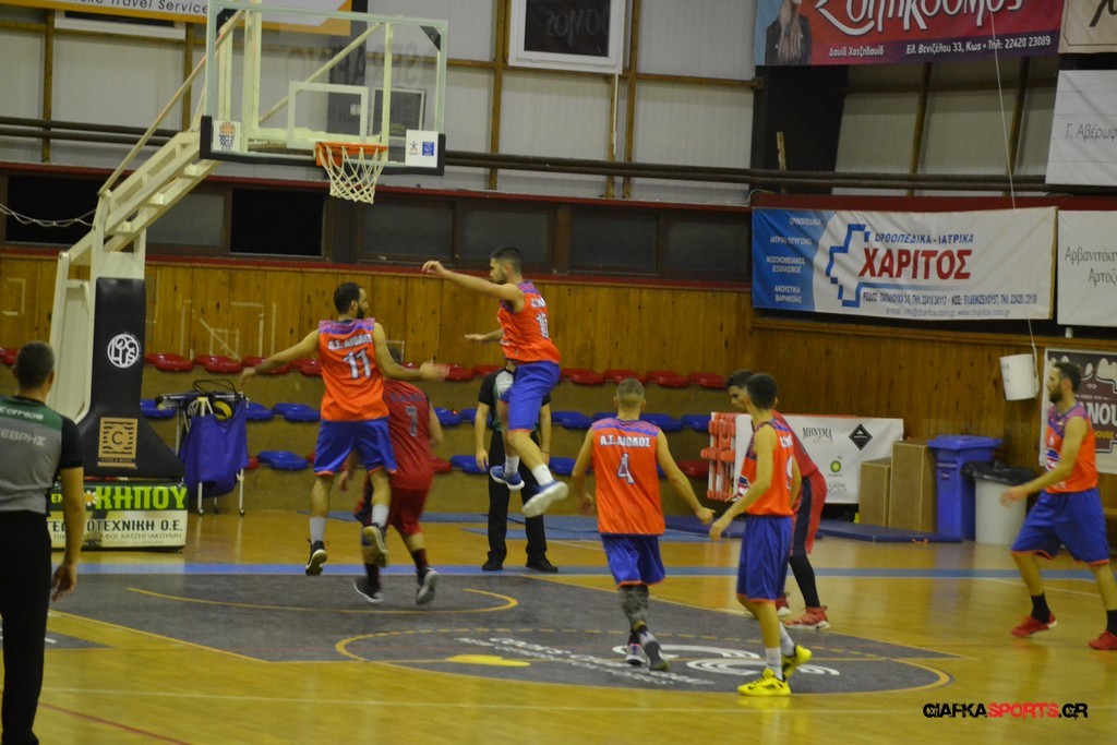 Μετά από ένα συγκλονιστικό παιχνίδι, που κρίθηκε στη δεύτερη παράταση, ο Αίολος Κεφάλου λύγισε την αντίσταση της Ε.Α. Καλύμνου με 69-67 (κ.α. 51-51, 1η παρ. 60-60). Οι «σφουγγαράδες» έχασαν πραγματικά μία μεγάλη ευκαιρία να φύγουν νικητές από την Κω, αφού προηγήθηκαν με 55-59 (με τρίποντο του Κοκκινίδη), μόλις 1.35’ πριν το τέλος της παράτασης, ωστόσο οι γηπεδούχοι βρήκαν τον τρόπο και ισοφάρισαν, πετυχαίνοντας στη συνέχεια την πρώτη τους νίκη στο φετινό πρωτάθλημα (όμιλος νήσων).