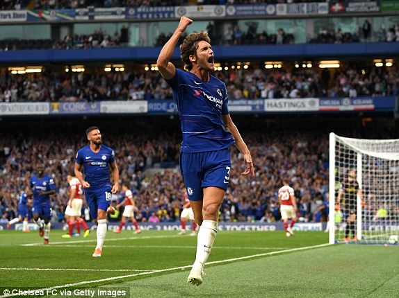 Στο 4’ και στο 5’ τα σουτ των Λουίζ και Πέδρο δεν απείλησαν ουσιαστικά τον Τσεχ, ενώ στο 8’ μετά από γύρισμα του Μονρεάλ, ο Οζίλ έβαλε την προβολή αλλά αστόχησε. Και στην αμέσως επόμενη φάση, ο Αλόνσο έβγαλε όμορφα για τον Πέδρο, ο οποίος μόνος στην περιοχή έκανε το 1-0 με πλασέ. Στο 13’ ο Μπάρκλεϊ έκανε το σουτ που έφυγε λίγο έξω, ενώ στο 17’ ο Κέπα μπλόκαρε το σουτ του Ομπαμεγιάνγκ ο οποίος στο 20’ έχασε το άχαστο μετά από γύρισμα του Μπεγερίν. Και μάλιστα στην κόντρα, ο Μοράτα με φοβερή προσπάθεια έβγαλε νοκ άουτ τον Μουστάφι και με σουτ έγραψε το 2-0. Ωστόσο το ματς είχε πολύ δρόμο ακόμη και στο 31’ ο Μχιταριάν έχασε απίστευτη ευκαιρία από κοντά αλλά στο 37’ μετά από λάθος του Γουίλιαν, ο Αρμένιος με φοβερό σουτ μείωσε σε 2-1. Με τη σέντρα ο Τσεχ σταμάτησε εντυπωσιακά τον Μοράτα και στο 41’ ο Μχιταριάν βρήκε όμορφα τον Ιβόμπι κι εκείνος με πλασέ έγραψε το 2-2. Στο 43’ το σουτ του Γκουεντουζί πέρασε λίγο έξω, όπως κι εκείνο του Ομπαμεγιάνγκ στο 44’ και στο 45’ ο Ιβόμπι έχασε νέα μεγάλη ευκαιρία.