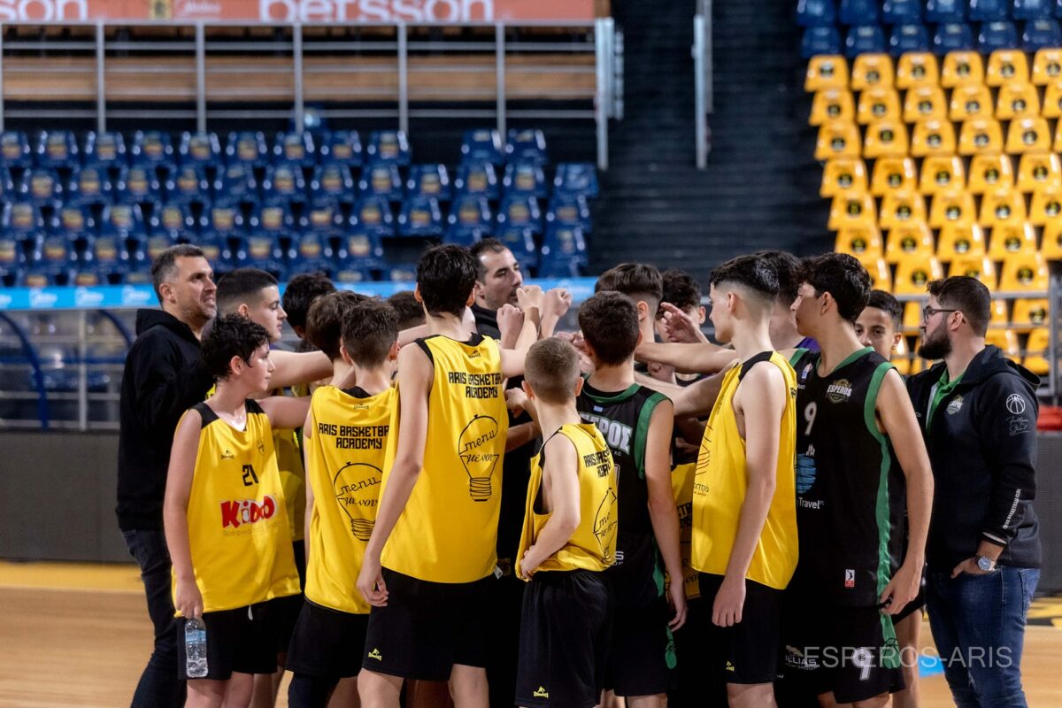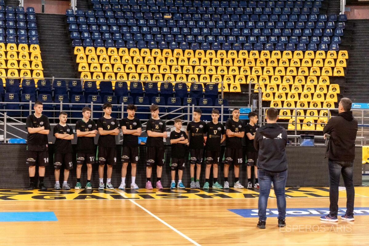 ”Την τελευταία μέρα του τριήμερου μπασκετικου ταξιδιού στη Θεσσαλονίκη, οι Παμπαίδες μας είχαν την χαρά να αγωνιστούν στο ιστορικό Παλε ντε σπορ, γνωστό πλέον ως NICK GALIS HALL. Και σε αυτό το παιχνίδι ο ρυθμός ήταν πολύ γρήγορος με τις δύο ομάδες να τα δίνουν όλα. Το 1ο δεκάλεπτο έληξε 22-21 υπέρ του Άρη , ο οποίος κρατούσε σταθερά το προβάδισμα μέχρι το τέλος του 3ου δεκαλέπτου 56-50. Στο 4ο δεκάλεπτο η ομάδα μας ανέτρεψε το σκορ και πήρε τη φιλική νίκη με 70-71. Διψήφιοι οι Χατζηστέργος Μάξιμος 19(4), Βασιλειάδης 16(1) και Χατζηστέργος Θεόφιλος 10(1)