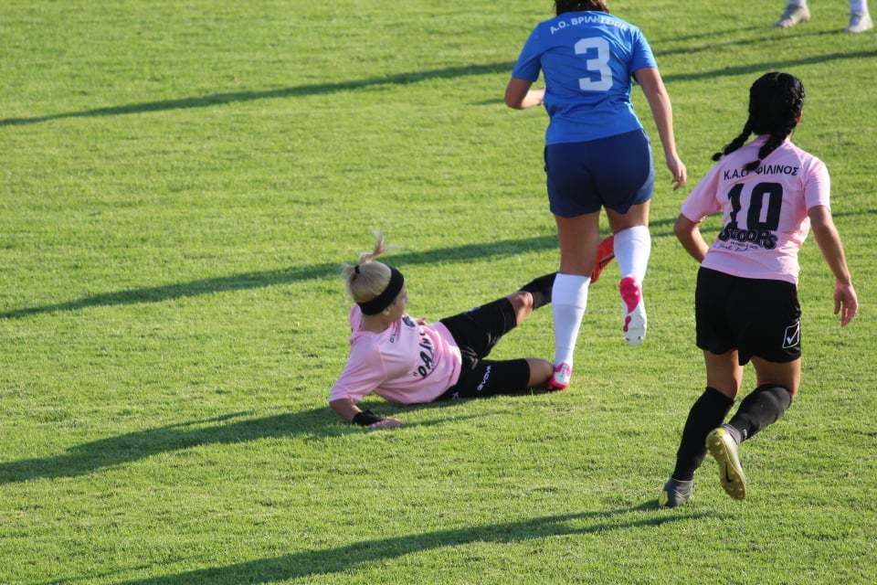 Με ένα γκολ στην αρχή κάθε ημιχρόνου τα Βριλήσσια κατάφεραν να επικρατήσουν με 0-2 του ΚΑΟ Φιλίνος σε εξ αναβολής αναμέτρηση για την Β’ Εθνική (4ος Όμιλος). Οι φιλοξενούμενες κατάφεραν να προηγηθούν στο 10ο λεπτό με την Ποτόγλου ενώ στο 55’ η Μαργώνη ήταν αυτή που διαμόρφωσε το 0-2. Η ομάδα του νησιού μας προσπάθησε να σκοράρει για να ξαναμπεί στην διεκδίκηση της αναμέτρησης χωρίς όμως να τα καταφέρει και το 0-2 έμεινε μέχρι το φινάλε.