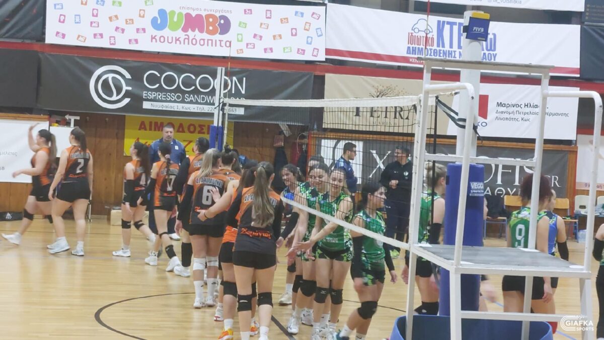 Σε ένα αρκετά ενδιαφέρον ματς στο Κλειστό γυμναστήριο Κω «Δημήτρης Παππούλης» η ομάδα του Α.Ο Αθλοπαιδιών Κω επικράτησε με 3-1 του Ανταγόρα και πήρε τη νίκη γοήτρου στο φινάλε του γυναικείου πρωταθλήματος σε ότι αφορά την κανονική διάρκεια ενώ οι «πράσινες» θα συνεχίσουν στα πλέι οφ.
