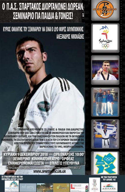 Ο 2 φορές Ολυμπιονίκης Αλέξανδρος Νικολαΐδης καλεσμένος του αθλητικού συλλόγου Σπάρτακος, θα μιλήσει σε ανοικτή εκδήλωση στον Ορφέα την Κυριακή 9 Δεκεμβρίου στις 10 το πρωί. Η ημερίδα περιλαμβάνει ενδιαφέρουσες ομιλίες και δράσεις γύρω από τους Ολυμπιακούς Άγωνες.