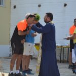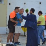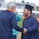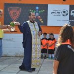Τον αγιασμό πραγματοποίησε ο πατήρ Τάσος Τσουκνιάς ο οποίος ευχήθηκε καλή χρονιά με υγεία και πολλά γκολ ενώ στο τέλος για να “παίξει” λιγάκι και με τους μικρούς κέρδισε απ’ τα έντεκα βήματα τον Κώστα Ανδρουλή.