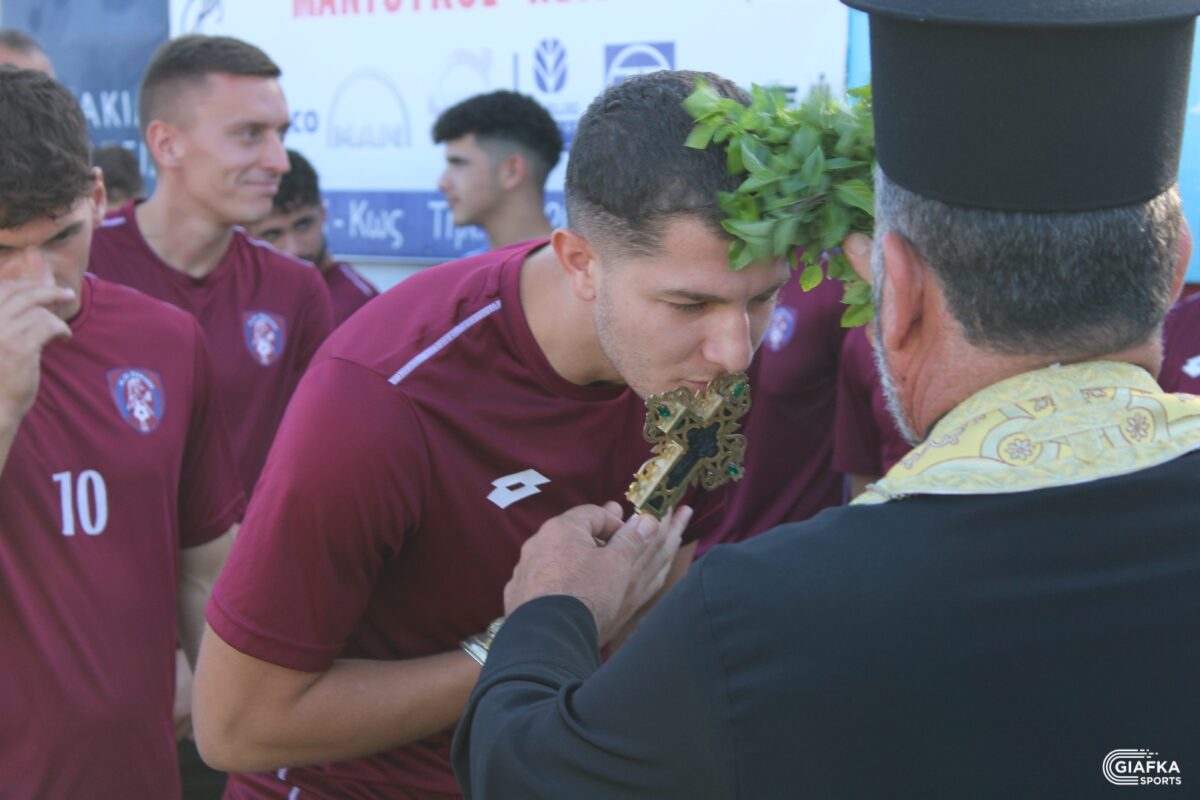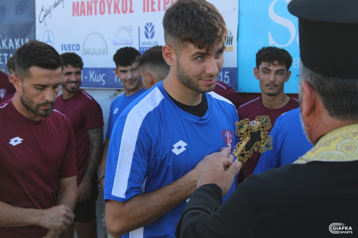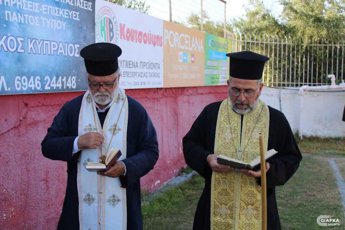 Τον αγιασμό τέλεσε ο πάτερ Ηρακλής Ζωγραφάκης και ο πάτερ Αναστάσιος Τσουκνιάς, που με την σειρά τους ευχήθηκαν τα καλύτερα για τον σύλλογο με τον παπα – Τάσο παραδοσιακά να εκτελεί το καθιερωμένο πια πέναλτι και τον Καλαντζή να πέφτει στην σωστή γωνία!