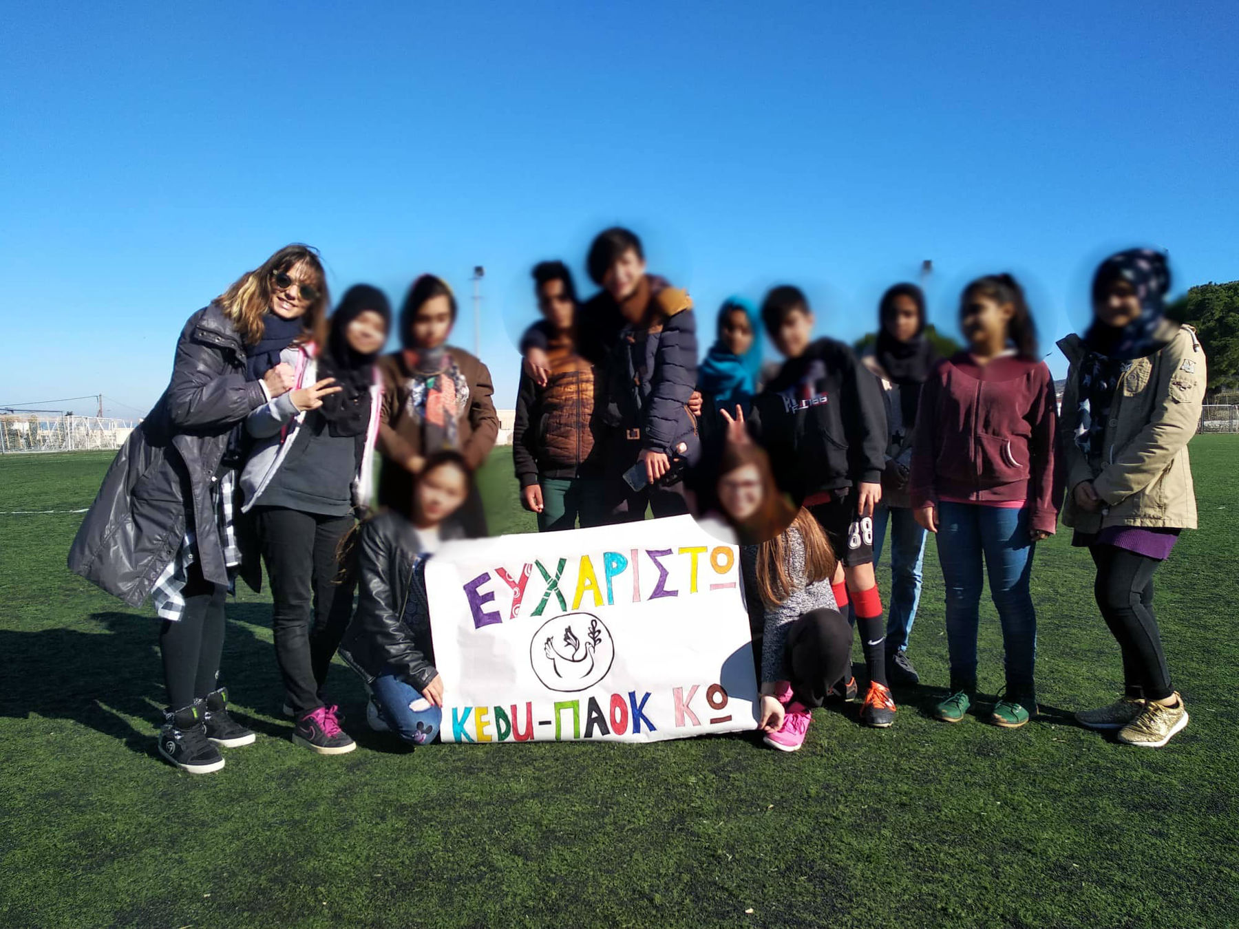 Φιλικός αγώνας πραγματοποιήθηκε χτες στο γήπεδο Ζηπαρίου ανάμεσα σε νεαρούς αθλητές του ΠΑΟΚ Κω και των παιδιών απ’ την κοινωνική οργάνωσης KEDU – ΑΡΣΙΣ (Κέντρο πρότυπο μη τυπικής εκπαίδευσης για παιδιά πρόσφυγες και μετανάστες ηλικίας 6-18 ετών) που χρηματοδοτείται απ’ την Ύπατη Αρμοστεία του ΟΗΕ.