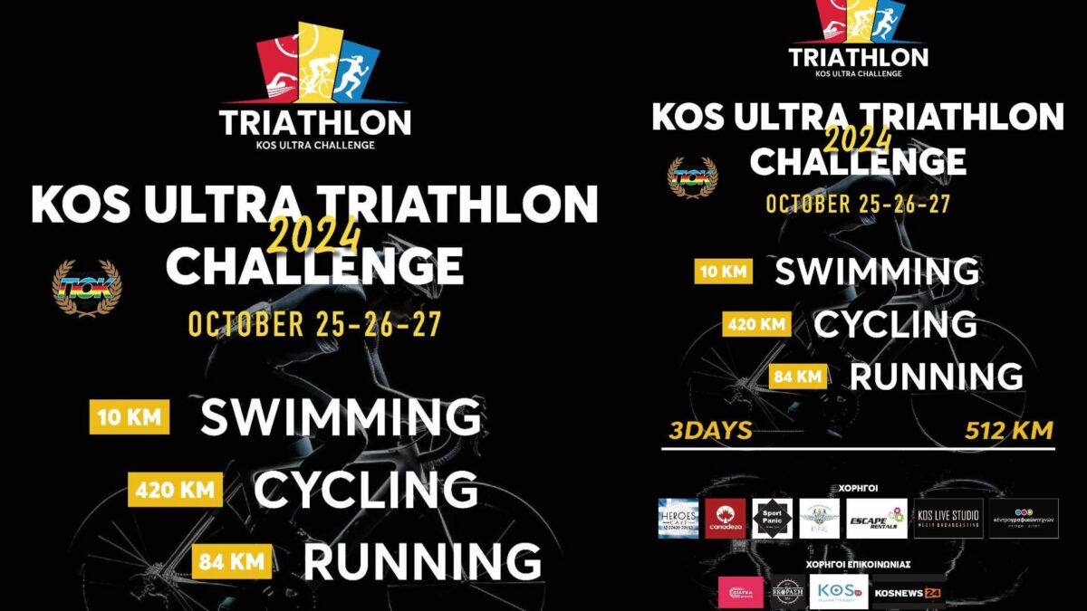 Ο αθλητής του Ποδηλατικού Ομίλου Κώ Δούβας Γεώργιος θα πραγματοποιήσει στις 25,26,27 Οκτωβρίου 2024 το Kos Ultra triathlon challenge 514km. Πρόκειται για μία αθλητική συνάντηση στην οποία ο αθλητής μας θα επιχειρήσει να ολοκληρώσει τις παρακάτω αγωνιστικές αποστάσεις , που αφορούν το ULTRA TRIATHLON CHALLENGE