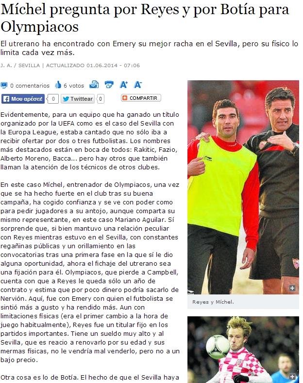 Συγκεκριμένα, το δημοσίευμα αναφέρει ότι ο τεχνικός του Ολυμπιακού ήθελε να μάθει αν πωλούνται οι δύο παίκτες και γενικά τις προθέσεις των «Ανδαλουσιανών», καθώς αμφότεροι έχουν συμβόλαιο με την Σεβίλλη!