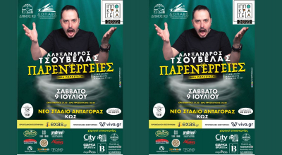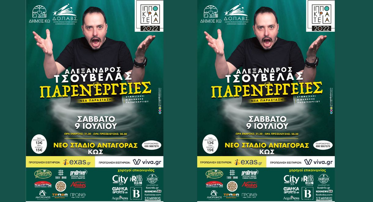 Ο μοναδικός Αλέξανδρος Τσουβέλας στην Κω. Ήρθαν ξανά οι παρενέργειες… σχέσεων ,καθημερινότητας με εναλλαγή φωνών με πρόζα ,κωμικά σκετς και αυτοσχεδιασμό. Φρέσκες , ολοκαίνουργιες και καθόλου ανησυχητικές.