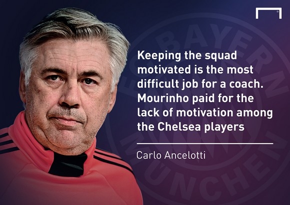 O Zοζέ Μουρίνιο απομακρύνθηκε από την Τσέλσι μετά τις 9 ήττες που έκανε η ομάδα του στις 16 πρώτες αγωνιστικές της Premier League, μόλις επτά μήνες μετά την κατάκτηση του τίτλου από τους Λονδρέζους, και σύμφωνα με τον Κάρλο Αντσελότι η αιτία του φετινού κακού για τον “Special One” ήταν πως δεν βρήκαν τα αναγκαία κίνητρα οι ποδοσφαιριστές.