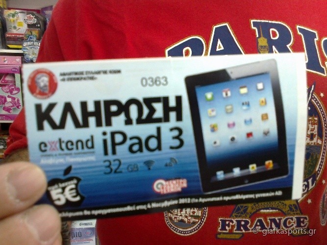 Ο Πολυχρόνης Διαμαντής ήταν ο μεγάλος τυχερός στην κλήρωση που έκανε ο Ιπποκράτης στο περιθώριο του αγώνα με την Αγία Παρασκευή και κέρδισε ένα ipad 3 αφού είχε τον τυχερό λαχνό με τον αριθμό 363.