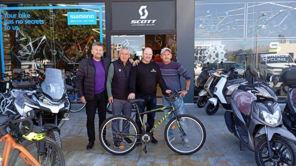 Πριν μερικές ημέρες έγινε η παραλαβή του δώρου του τυχερού της λαχειοφόρου αγοράς του ΠΑΟΚ Κω, με τον κ. Θεοδωρή, γονέα παιδιού της ακαδημίας της ομάδας να παραλαμβάνει το ποδήλατο απ’ τον κ. Σέρνικο με την παρουσία και του υπεύθυνου των ακαδημιών, Σταύρου Κωτσόπουλου αλλά και του τεχνικού διευθυντή της ομάδας, Παναγιώτη Πηλιγκού.