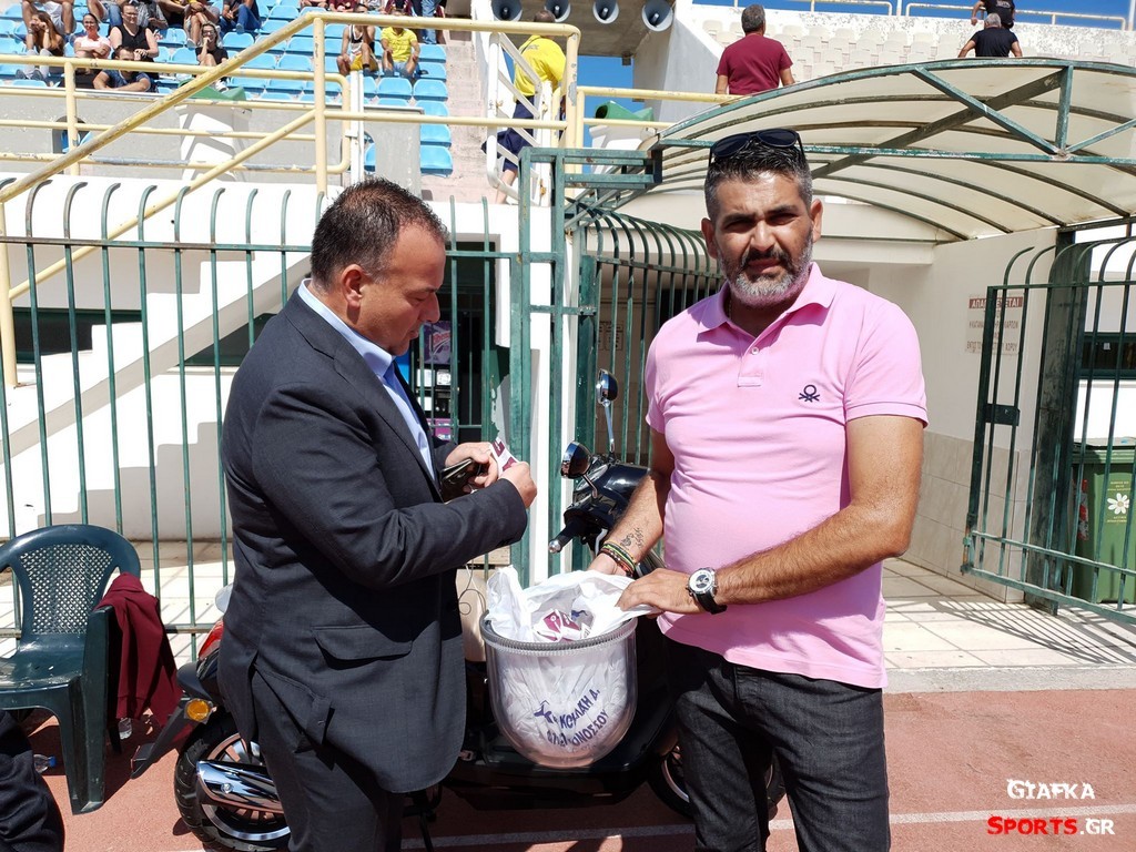 Στο ημίχρονο του πρώτου αγώνα εντός έδρας πραγματοποιήθηκε η κλήρωση για ένα μηχανάκι EVOMOTO CRUISE 50 με την παρουσία του βουλευτή Γιάννη Παππά τον οποίο και ευχαριστούμε θερμά. Ο αριθμός που κερδίζει είναι ο 0178.