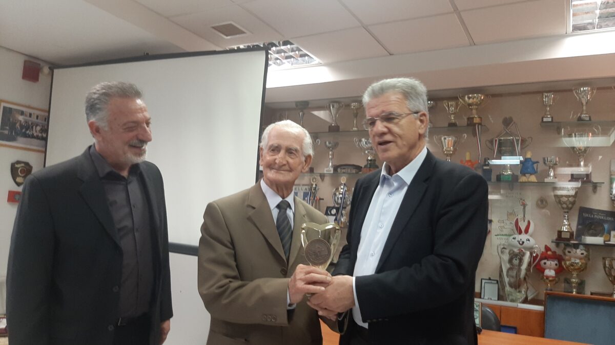 Ο Χάλκινος Πρωταθλητής Ευρώπης στα 110μ με εμπόδια ο Σαισανάς Νίκος βραβεύτηκε από τον Κώστα Τσώλο ταμία της ΟΕΒΑΣ.