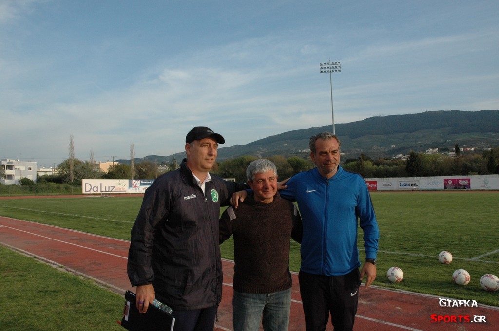 Απόλυτα ικανοποιημένος από την προσπάθεια που έκαναν οι παίκτες του αλλά και από την πρόκριση στον ημιτελικό ήταν μετά το τέλος της αναμέτρησης ο προπονητής της ΑΕ Κω Λεωνίδας Κούτσικας. Ο ίδιος πάντως έσπευσε να τονίσει στο news12 πως πρωταρχικός στόχος της ομάδας του είναι η εξασφάλιση της παραμονής στην Α΄ Κατηγορία. Στην φώτο με τον πατέρα του Βαγγέλη Πλατέλλα τον οποίο είχε παίκτη ο νυν προπονητής της Ρόδου, Σάκης Δέδες.