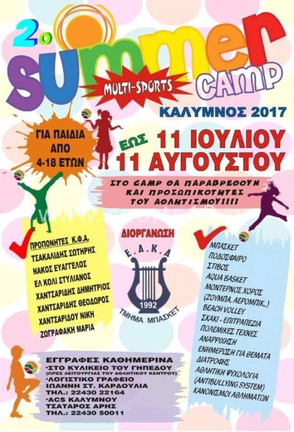 ”Κάθε μέρα είναι και έκπληξη για το 2ο Super Summer Multi Sports Camp που διοργανώνει άρτια φέτος η ιστορική μπασκετική ομάδα ΕΑΚΑ και αυτό φαίνεται στο τι προσφέρει αυτό το camp στο παιδί. Ποικίλη γνώση στην άθληση , κοντά στον αθλητισμό, μακριά από περίεργες εξαρτήσεις της εποχής που δεν βοηθάνε στη σωστή ανάπτυξη του παιδιού. Οι άρτια εκπαιδευμένοι προπονητές του camp έχουν καθηλώσει τους μικρούς αθλητές όπου καθημερινά έρχονται με κέφι και ενθουσιασμό να παίξουν, να διασκεδάσουν, να αθληθούν. Ο λόγος για τους κ.κ. Τσακαλίδη Σωτήρη, Χαντσαρίδη Δημήτρη, Κουλιανό Μικέ, Χαντσαρίδη Θεόδωρο, Ελ Κολί Στέλιο, Χαντσαρίδου Νίκη, Ζωγραφάκη Μαρία και Κοσσαρή Γιάννη. Καθημερινοί ήρωες, πρόθυμοι στην καρδιά του καλοκαιριού να προσφέρουν, να διδάξουν, να δημιουργήσουν. Το Δ.Σ. της Ε.Α.ΚΑ. τους ευχαριστεί από καρδιάς και τους ενθαρρύνει διαρκώς σε αυτή την κοπιαστική μηνιαία τους προσπάθεια, καθώς ως γνώμονα έχουν μόνο το παιδί , μόνο τον αθλητή. Στο πλαίσιο αυτό και με παρανομαστή το καλό του αθλητή, η Ε.Α.ΚΑ. εξακολουθεί να βλέπει μπροστά και να πρωτοπορεί για άλλη μια φορά. Η ετήσια μπασκετική συνάντηση των Ελλήνων της διασποράς και συγκεκριμένα της Αμερικής με τους καλύτερους αθλητές της Καλύμνου είναι πρώτο στην ατζέντα των εκδηλώσεων του Camp για αυτή τη βδομάδα . Το Σάββατο 29 Ιουλίου στις 18:00 το απόγευμα θα γίνει ο συναρπαστικός αυτός μπασκετικός αγώνας Αμερικής- Καλύμνου, θεσμός τα τελευταία χρόνια στο νησί . Πρέπει να παραβρεθούν όλοι εκεί και εκτός camp και να δώσουν μια ζέστη νότα με την παρουσία τους. Το 2ο Super Summer Multi Sports Camp της ΕΑΚΑ καθημερινά ανεβάζει τον πήχη , καθημερινά εγγράφονται νέα παιδιά , καθημερινά γινόμαστε κοινωνοί μιας εξαιρετικής συλλογικής προσπάθειας , που δεν έχει να ζηλέψει τίποτα από μεγαλύτερους αθλητικούς συλλόγους”.
