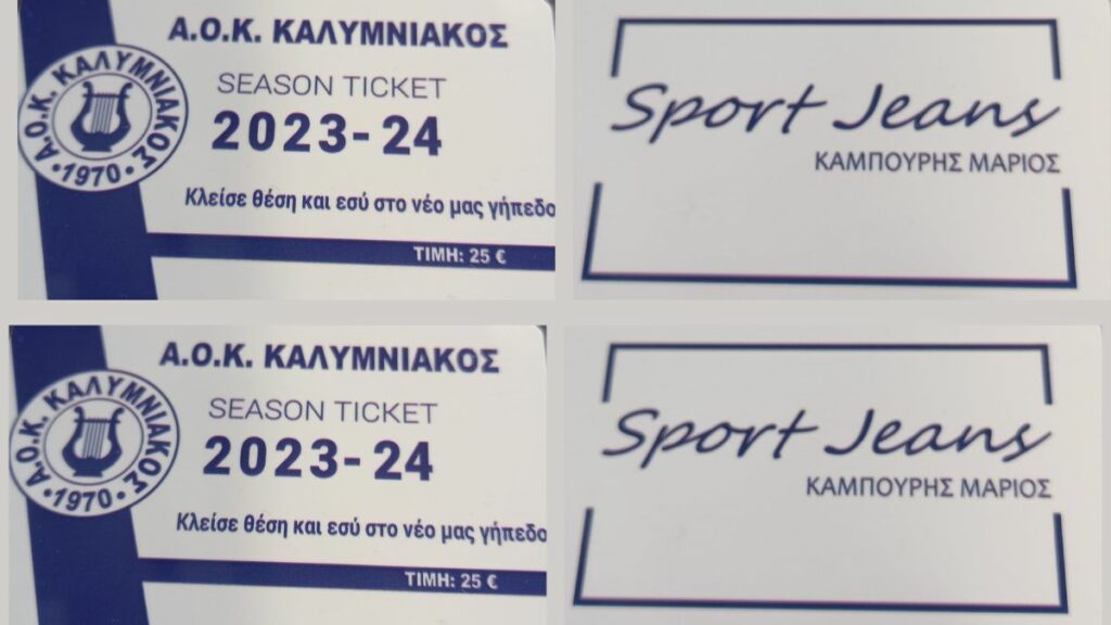 Στη διάθεσή των φιλάθλων τέθηκαν οι κάρτες διαρκείας του Καλυμνιακού για τη νέα χρονιά. Αναλυτικά, η ανακοίνωση του συλλόγου: ”Κυκλοφόρησαν οι νέες κάρτες διαρκείας μας για τη νέα χρονιά. Προμηθευτείτε το εισιτήριο διαρκείας, ενισχύστε την ομάδα μας και γίνε και φέτος ο 12ος μας παίκτης στην πορεία για την επιστροφή στην Α’ Κατηγορία. Δωρεάν αποστολή παντού”.