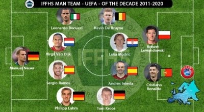 Η Διεθνής Ομοσπονδία Ιστορίας και Στατιστικής του Ποδοσφαίρου (IFFHS) έκανε γνωστές τις κορυφαίες 11αδες για την τελευταία δεκαετία (2011-20), σε UEFA (παίκτες από Ευρώπη), AFC (παίκτες από Ασία και Αυστραλία) και OFC (παίκτες από Ωκεανία).