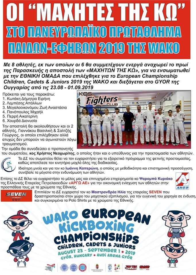 Οι Μαχητές της Κω στο Πανευρωπαϊκό Πρωτάθλημα Παίδων – Εφήβων 2019 της WAKO