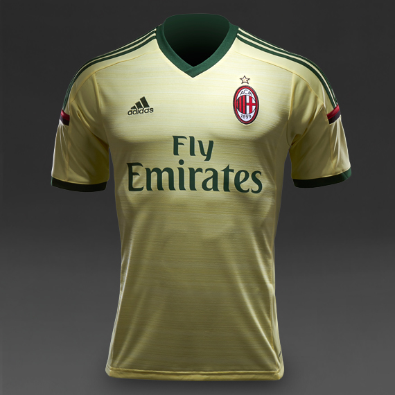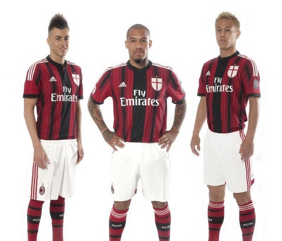 Η πρώτη εμφάνιση της νέας Μίλαν θα είναι κλασική με μαύρες και κόκκινες ρίγες, έχοντας κουμπιά μπροστά. Η τρίτη εμφάνιση είναι επηρεασμένη από το Μουντιάλ της Βραζιλίας και αυτό φαίνεται από το ότι κυριαρχούν σ’ αυτή το κίτρινο και το πράσινο χρώμα.