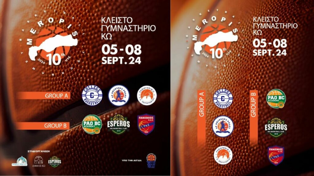 Ανακοινώθηκαν απ’ τον Έσπερο οι δύο όμιλοι για το 10ο Meropis το οποίο θα διεξαχθεί απ’ τις 5 έως τις 8 Σεπτεμβρίου στο Κλειστό γυμναστήριο Κω. Αναλυτικά, οι δύο ομίλοι του διεθνούς τουρνουά παίδων ”Μεροπίς”, το οποίοι διεξάγεται κάθε χρόνο πριν από την έναρξη της χρονιάς.