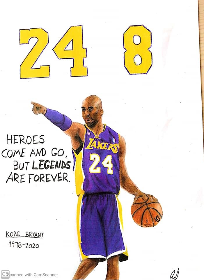 Ο Φοίβος όλο αυτό το διάστημα θέλοντας να κάνει πιο ενδιαφέρουσα την παραμονή των παιδιών στο σπίτι λόγω του κορονοϊού του έβαλε στην διαδικασία να ζωγραφίσουν με θέμα τον θρύλο του ΝΒΑ, Κόμπε Μπράιντ που έφυγε πριν λίγο καιρό απ’ την ζωή.