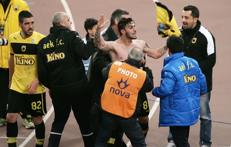 Μόλις είδα την κίνηση με το υψωμένο χέρι, αμέσως έτρεξα να τον σταματήσω. Μπήκα μπροστά του για να τον σταματήσω και του φώναξα «τι κάνεις εκεί; Σταμάτα!». Εν συνέχεια του κατέβασα το χέρι και του λέω «μπες στο γήπεδο και βάλε την φανέλα σου». Έβλεπα έναν άνθρωπο εκτός εαυτού και κάποιος έπρεπε να κάνει κάτι, για αυτό και μπήκα μπροστά του. Ήταν σε αμόκ!