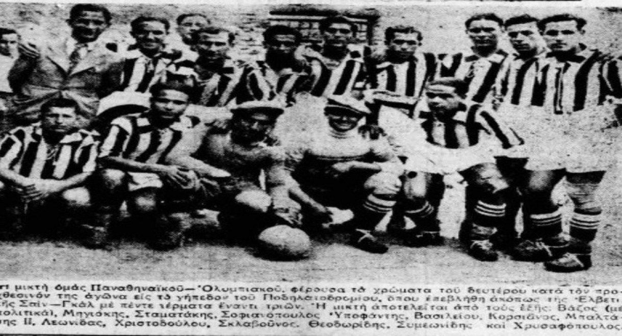 Στην ιστορική φωτογραφία της εφημερίδας «Αθλητικά Χρονικά» ποζάρουν οκτώ παίκτες του Παναθηναϊκού φέροντες την εμφάνιση του Ολυμπιακού και έξι παίκτες του Ολυμπιακού, ο ένας εξ αυτών (Γιάννης Βάζος του Ολυμπιακού) με πολιτικά ρούχα, ενώ στη σειρά των καθιστών διακρίνεται προτελευταίος ο τότε τερματοφύλακας του Ολυμπιακού Θεόδωρος Θεοδωρίδης, πατέρας του σημερινού Αντιπροέδρου και επίσης παλαιού τερματοφύλακα του Ολυμπιακού Σάββα Θεοδωρίδη.