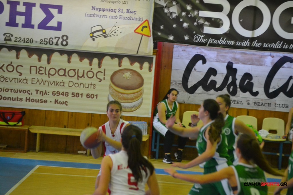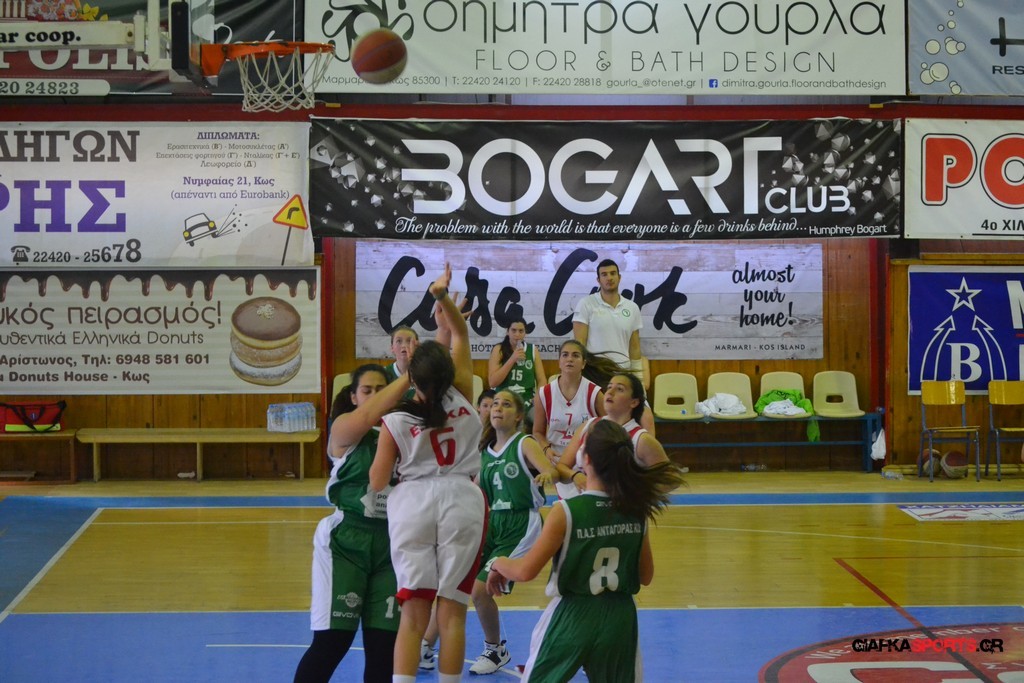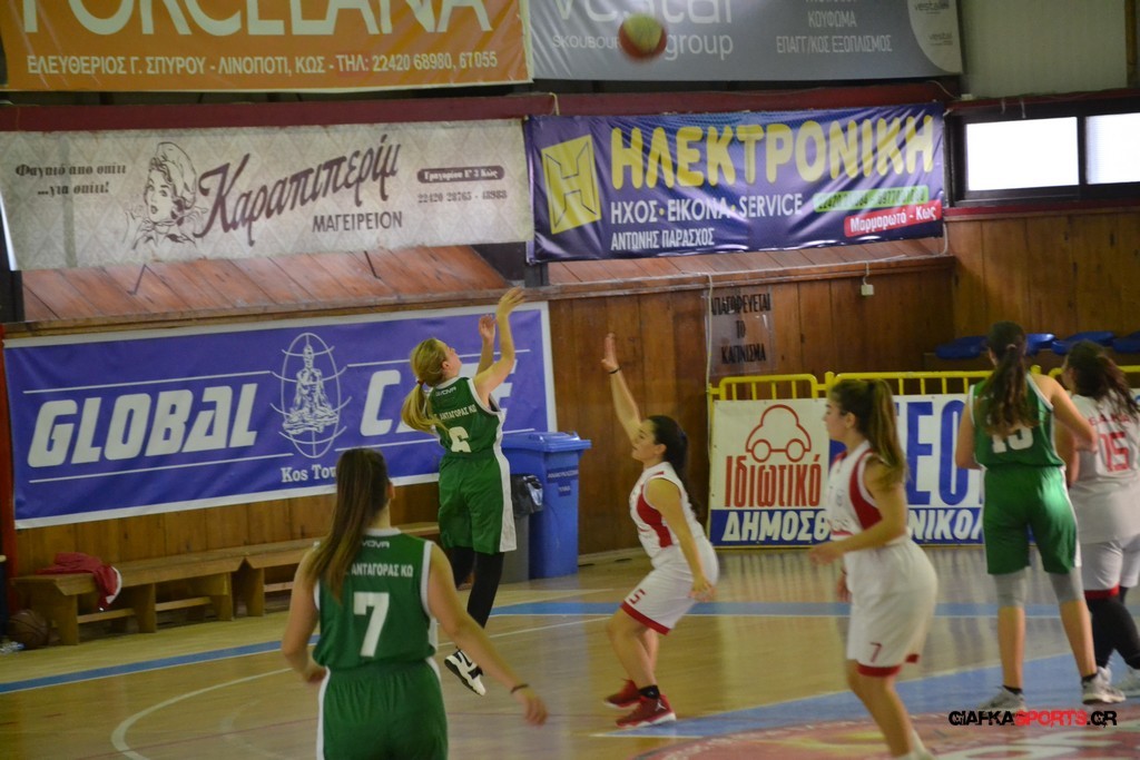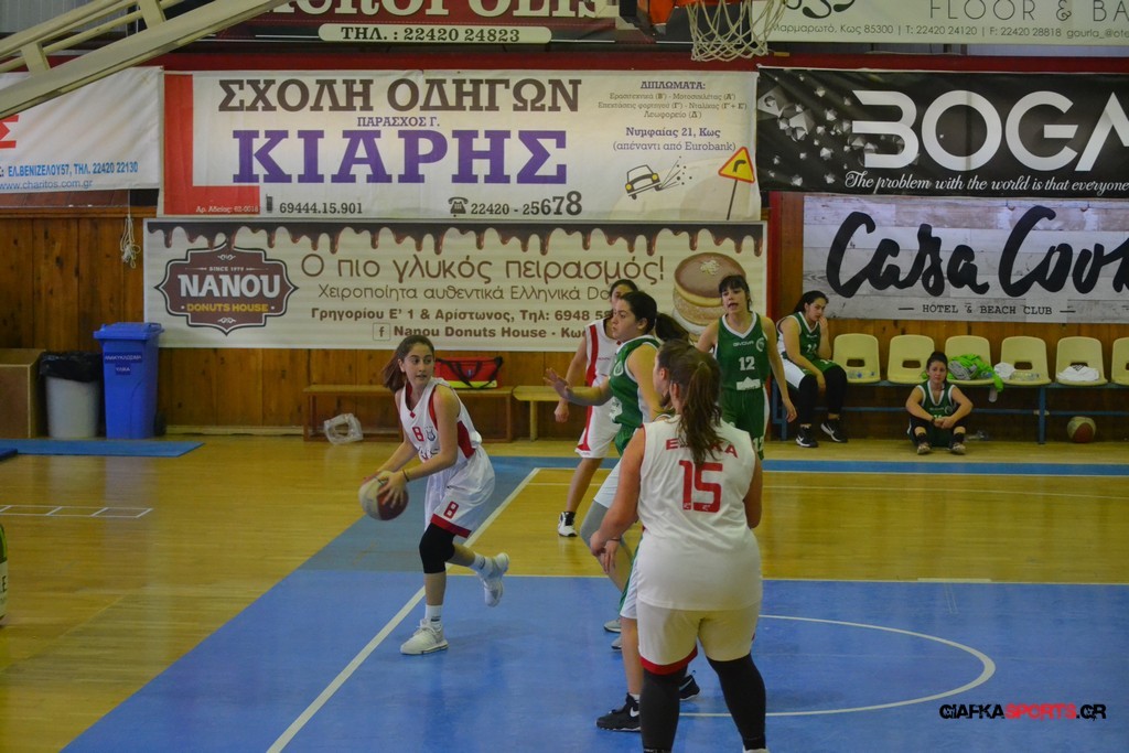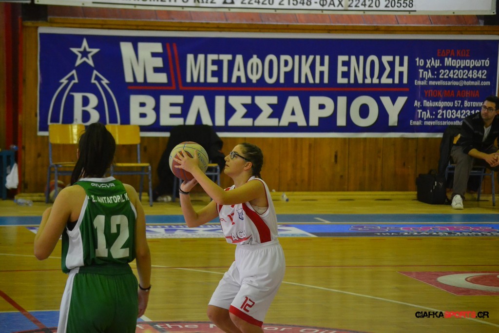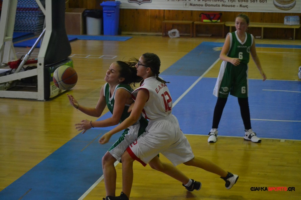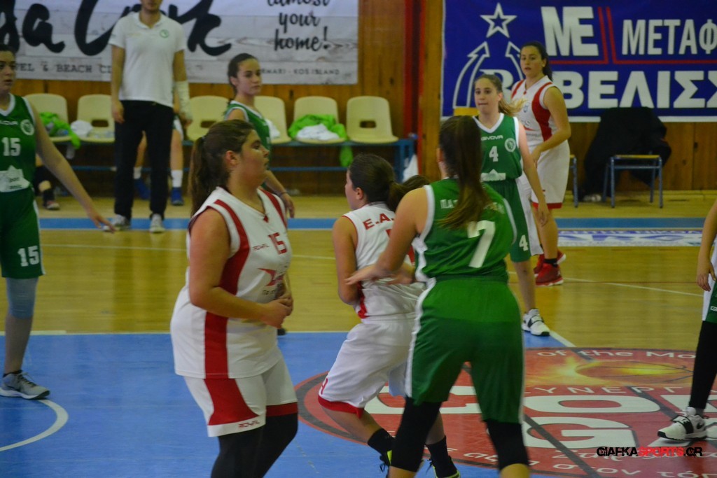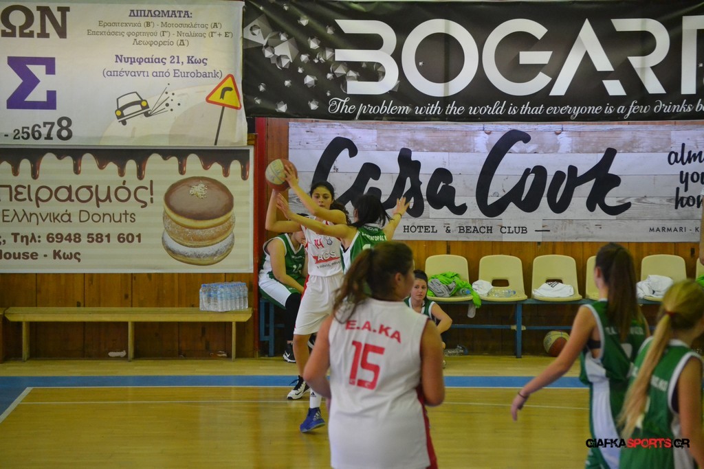 Παίρνοντας προβάδισμα 4-17 απ’ το πρώτο δεκάλεπτο η Ε.Α.ΚΑ επικράτησε εύκολα με 28-53 του Ανταγόρα στο Κλειστό γυμναστήριο Κω για το πρωτάθλημα παγκορασίδων. Η ομάδα του Σωτήρη Τσακαλίδη είχε σε μεγάλη μέρα την Γεωργαρά που πέτυχε σχεδόν τους μισούς πόντους της ομάδας της και έφτασε στο ροζ φύλλο αγώνος.