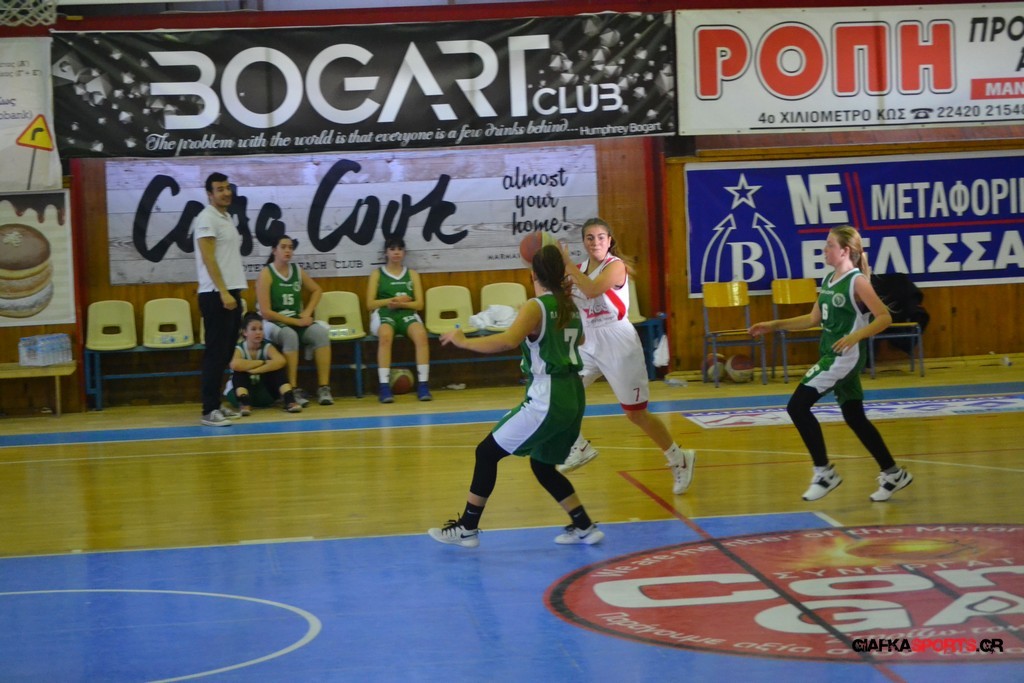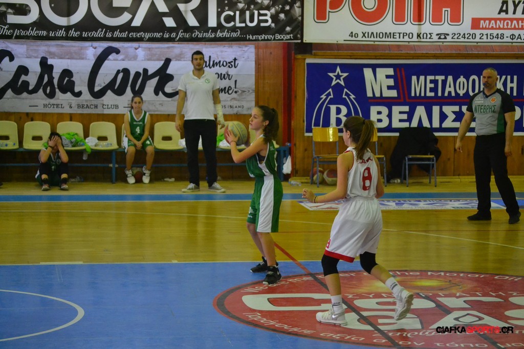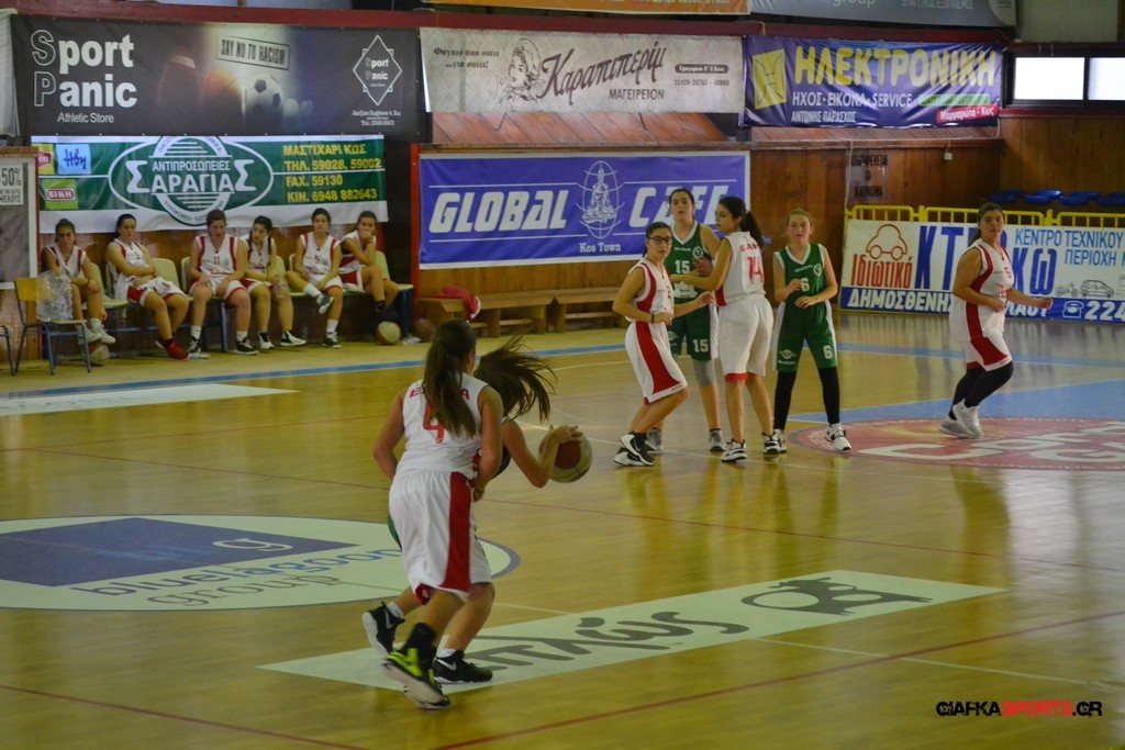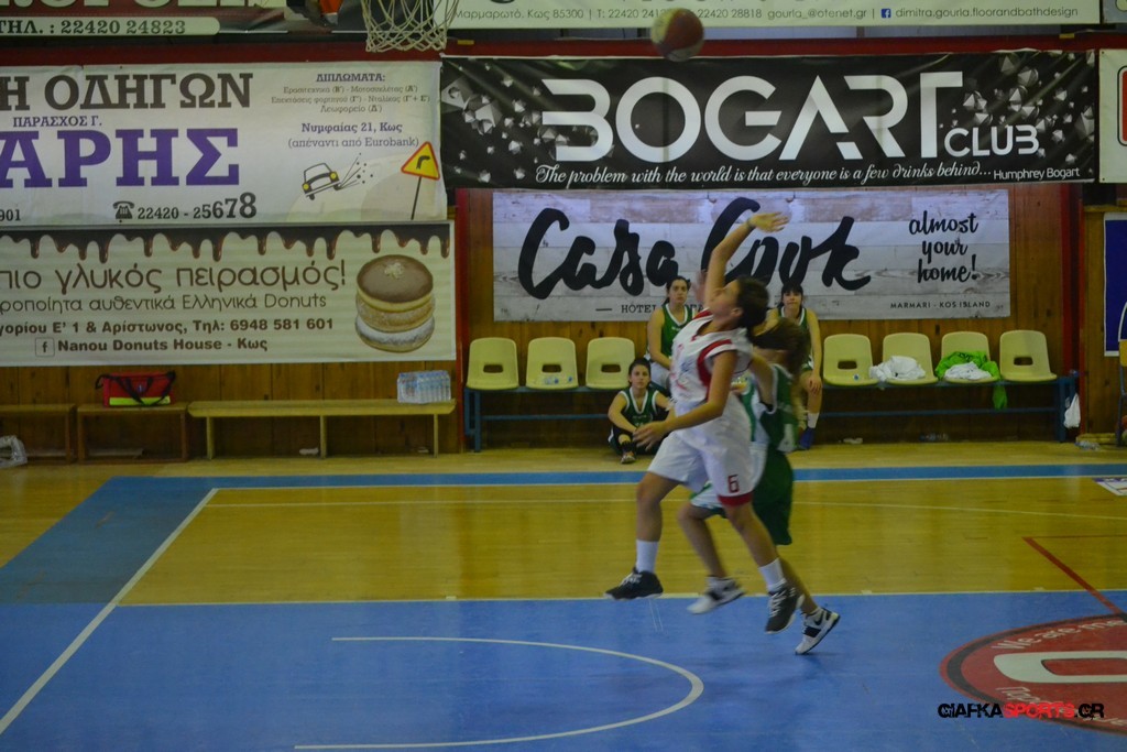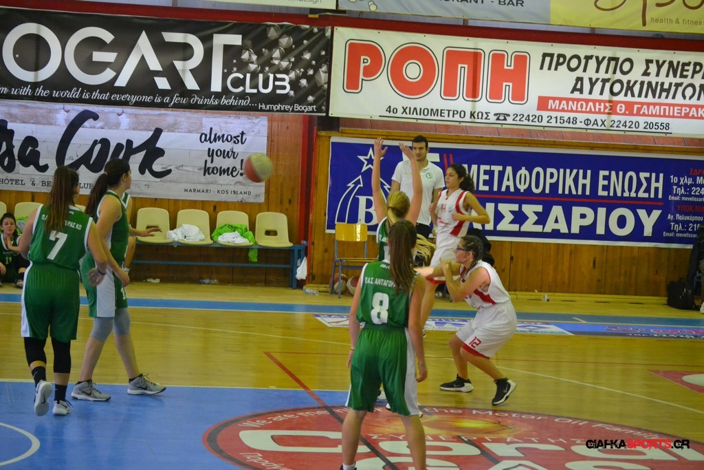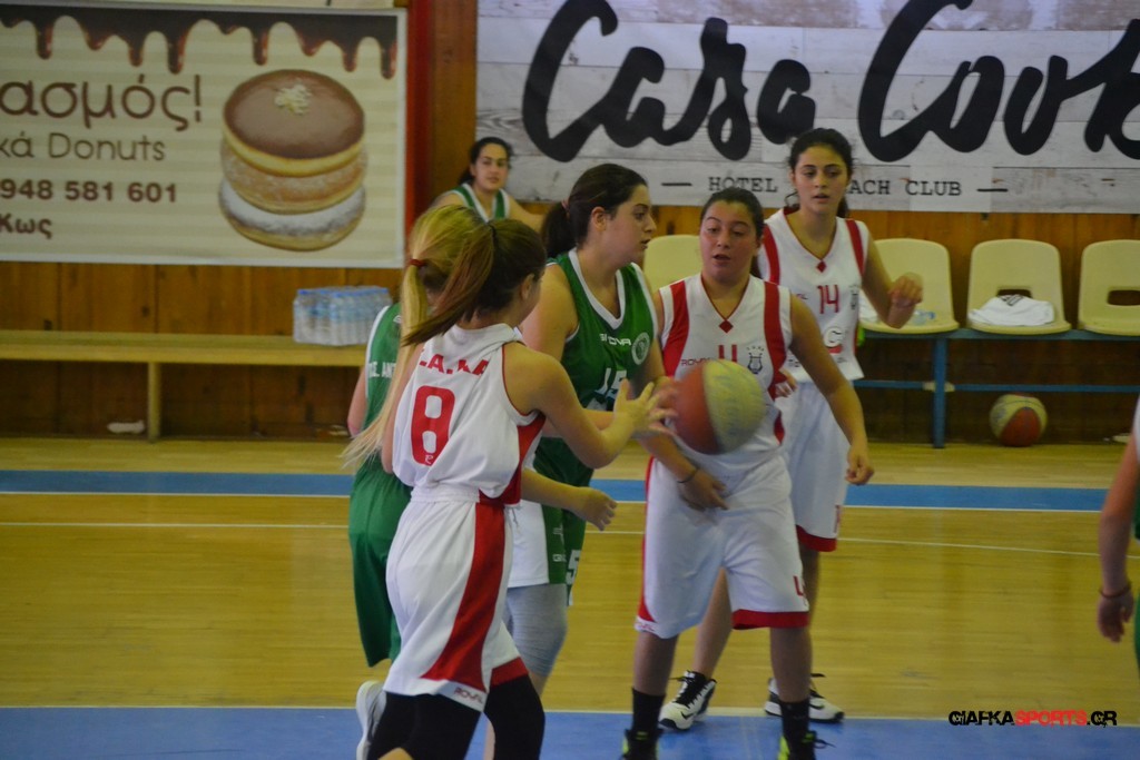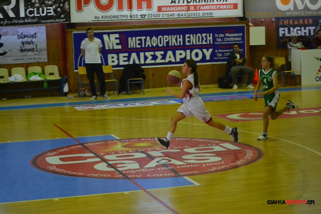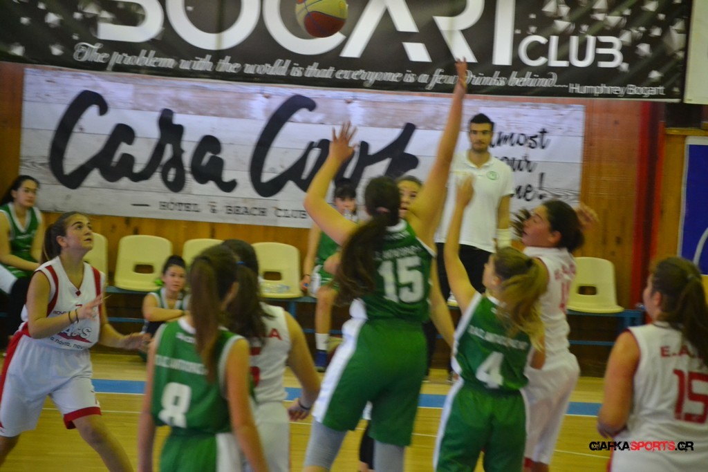 Παίρνοντας προβάδισμα 4-17 απ’ το πρώτο δεκάλεπτο η Ε.Α.ΚΑ επικράτησε εύκολα με 28-53 του Ανταγόρα στο Κλειστό γυμναστήριο Κω για το πρωτάθλημα παγκορασίδων. Η ομάδα του Σωτήρη Τσακαλίδη είχε σε μεγάλη μέρα την Γεωργαρά που πέτυχε σχεδόν τους μισούς πόντους της ομάδας της και έφτασε στο ροζ φύλλο αγώνος.