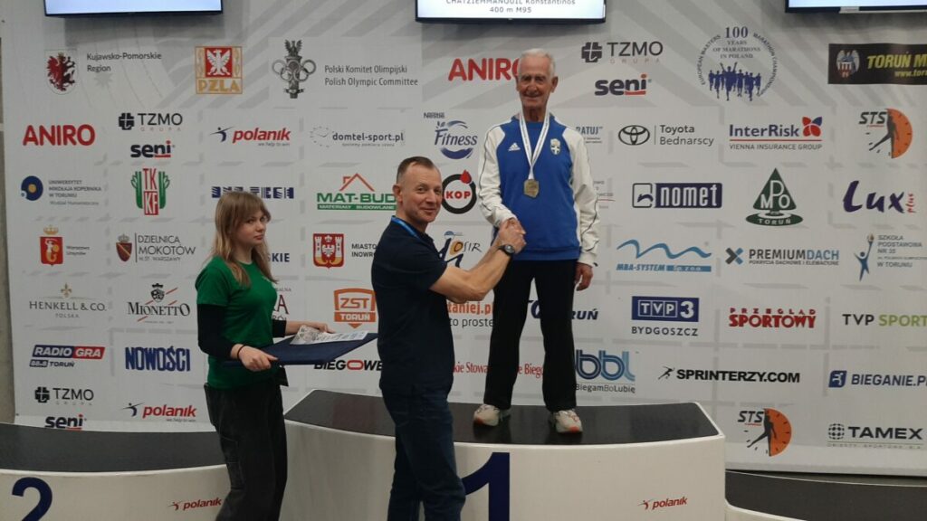Με μια εκπληκτική κούρσα στα 400μ ο παγκόσμιος Έλληνας πρωταθλητής Κωνσταντίνος Χατζηεμμανουήλ έκανε νέο παγκόσμιο ρεκόρ στην κατηγορία Μ95 με τον εκπληκτικό χρόνο 2:17.37 καταρρίπτοντας το παγκόσμιο ρεκόρ που κατείχε ο Αμερικανός παγκόσμιος πρωταθλητής Orville Rogers από τις 22/3/2013 με χρόνο 2:24.51. Ο Έλληνας πρωταθλητής Ευρώπης έκανε μια εκπληκτική κούρσα υπό τις επευφημίες των  θεατών που παρακολουθούσαν τους απογευματινούς τελικούς των αγώνων. Ο Κώος αθλητής το πρωί είχε αγωνιστεί και στο αγώνισμα του άλματος εις μήκος όπου κι εκεί κατέκτησε το χρυσό μετάλλιο.