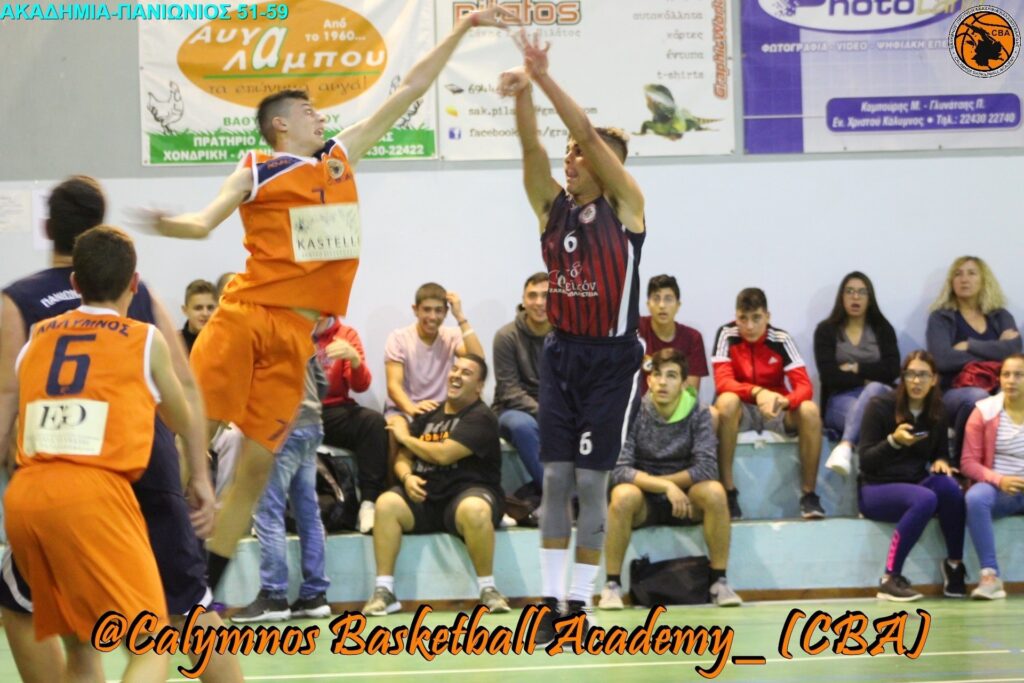 Τεράστια νίκη πέτυχαν οι παίδες του Πανιωνίου Λέρου στην Κάλυμνο κόντρα στην τοπική Ακαδημία, κάνοντας το 3 στα 3 στον όμιλο νήσων. Στο εξ αναβολής παιχνίδι της 2ης αγωνιστικής, η ομάδα του Γιάννη Μωραΐτη έκανε ίσως το πιο σημαντικό βήμα για την πρόκριση της στο φάιναλ-φορ, κερδίζοντας τους πρωταθλητές Δωδεκανήσου και μάλιστα με +8. Οι Λεριοί είχαν περισσότερες λύσεις και με τους Μαρούγκα, Γαρυφαλλή και Παπαριστείδη να πετυχαίνουν διψήφιο αριθμό πόντων, έφυγαν νικητές από το νησί των «σφουγγαράδων» και ανέβηκαν στο ρετιρέ του βαθμολογικού πίνακα. Το α’ δεκάλεπτο ήταν ισορροπημένο, ωστόσο στο β’ και στο γ’, ο Πανιώνιος Λέρου ξέφυγε με διψήφιο αριθμό πόντων, άντεξε στην πίεση στο φινάλε και πήρε το ροζ φύλλο αγώνα.