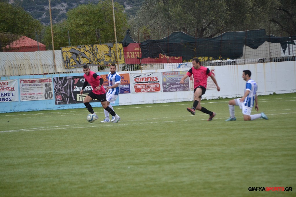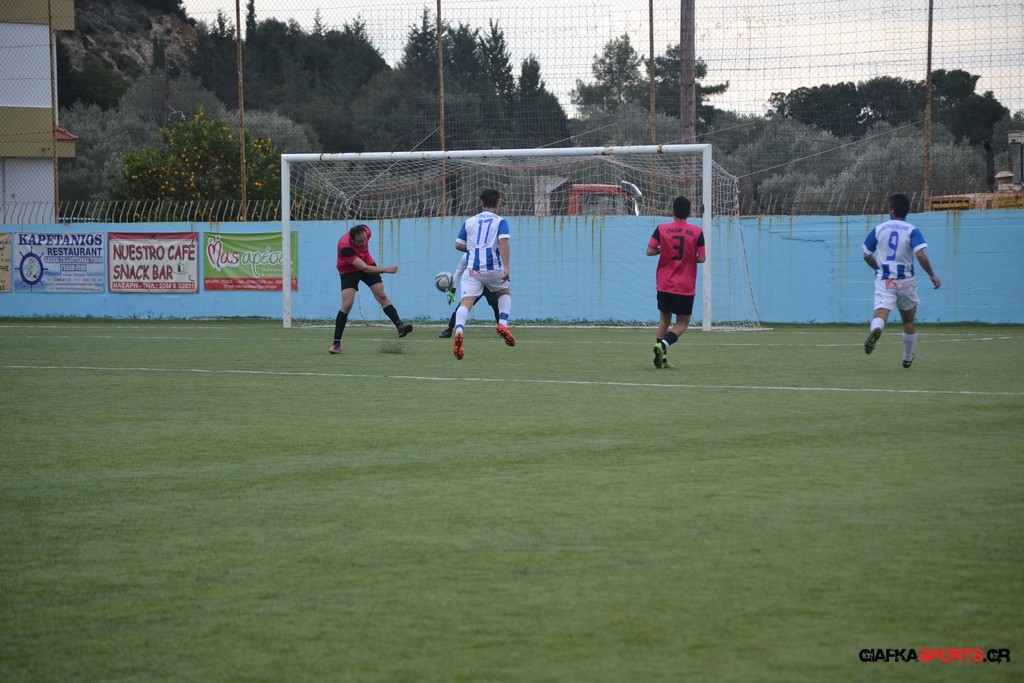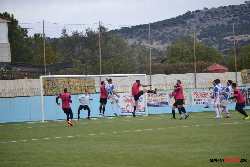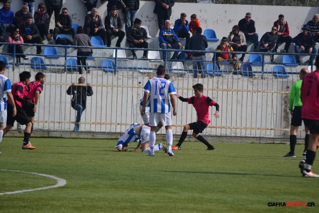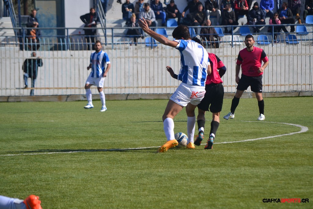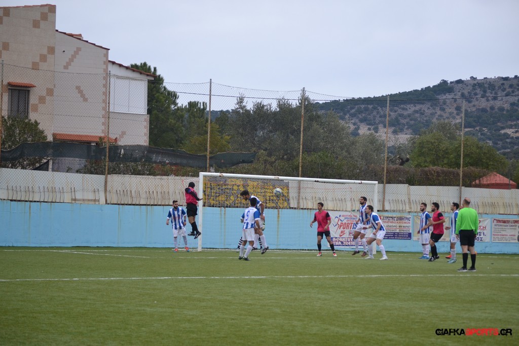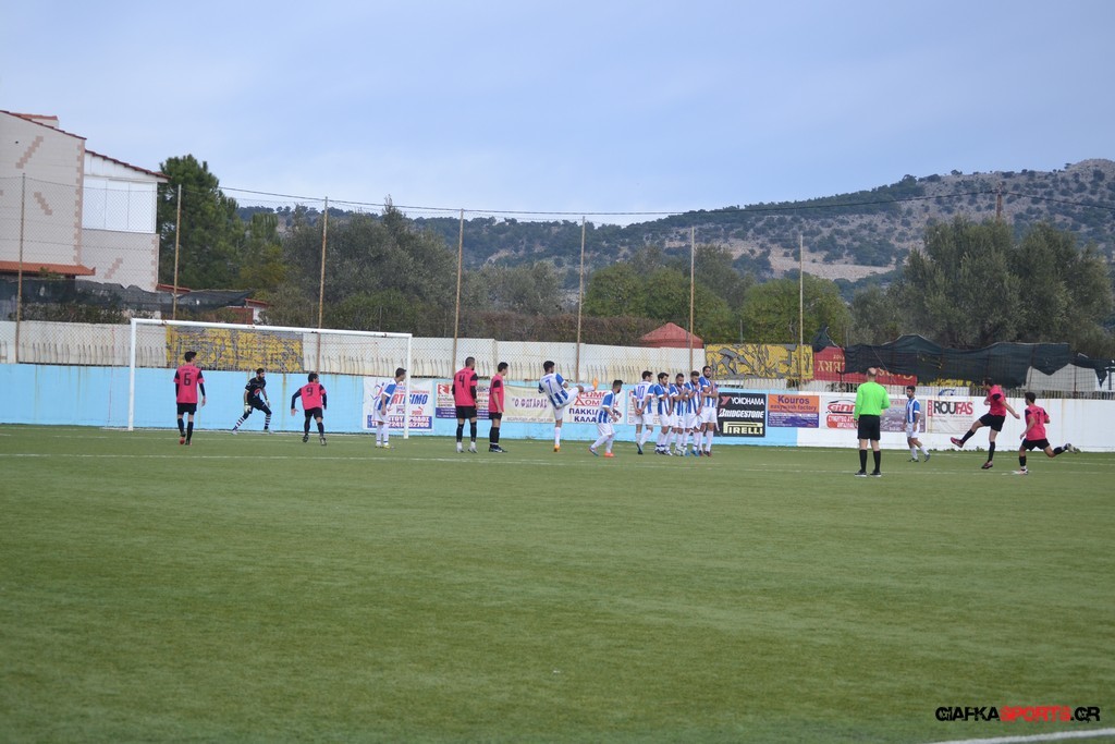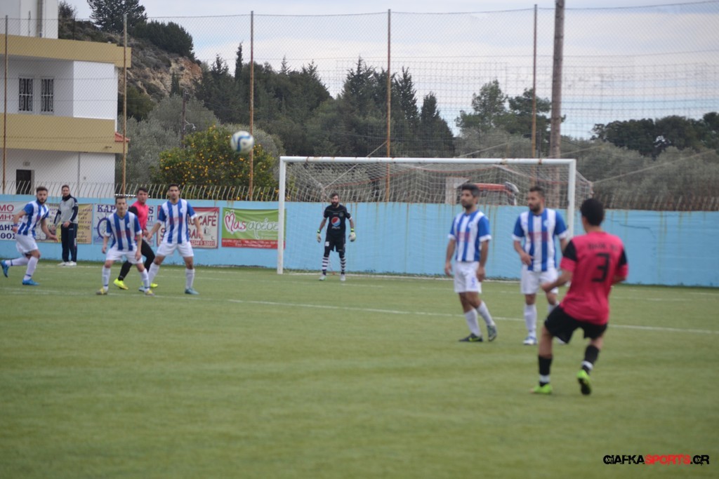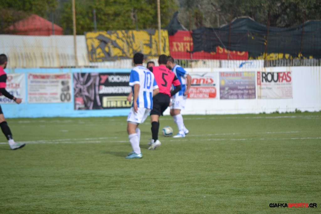 Ο ΠΑΟΚ Κω κατάφερε να ισορροπήσει το ματς και στο 38′ σε μια αντεπίθεση ο Μικές Ξυπολιτάς μετά από κάθετη του Μακαράνα ανατράπηκε από τον Φωταρά που ήταν τελευταίος παίκτης με τον Πατσιόπουλο να τον αποβάλλει με απευθείας κόκκινη κάρτα . Στο 39′ ο Κουβαράς απείλησε με φάουλ με τον Τόππο να αποκρούει στην αριστερή γωνία και να κρατά το 1-0 ενώ λίγο πριν το ημίχρονο ο Κουβαράς με κεφαλιά στο δεύτερο δοκάρι έστειλε την μπάλα λίγο άουτ.