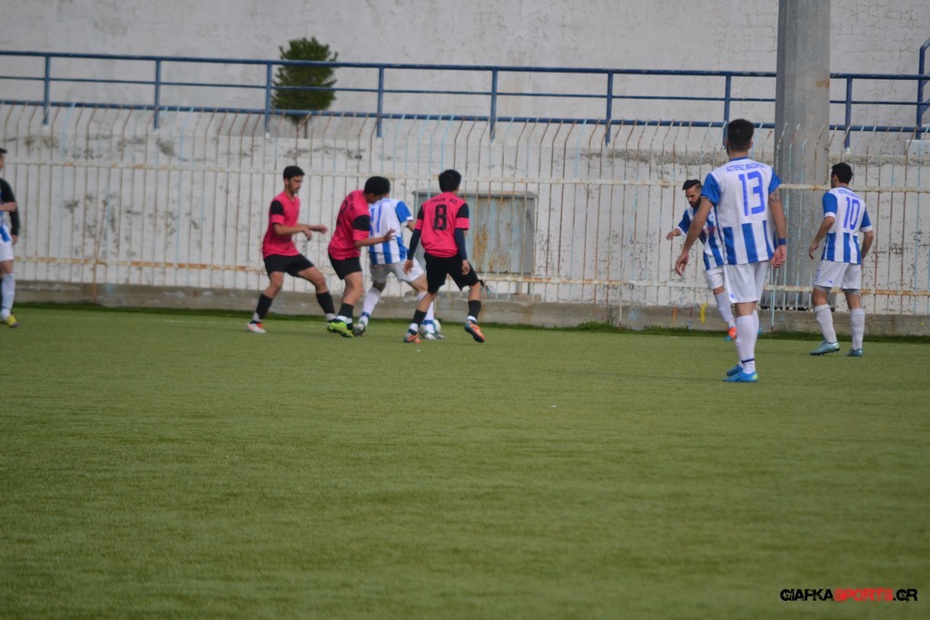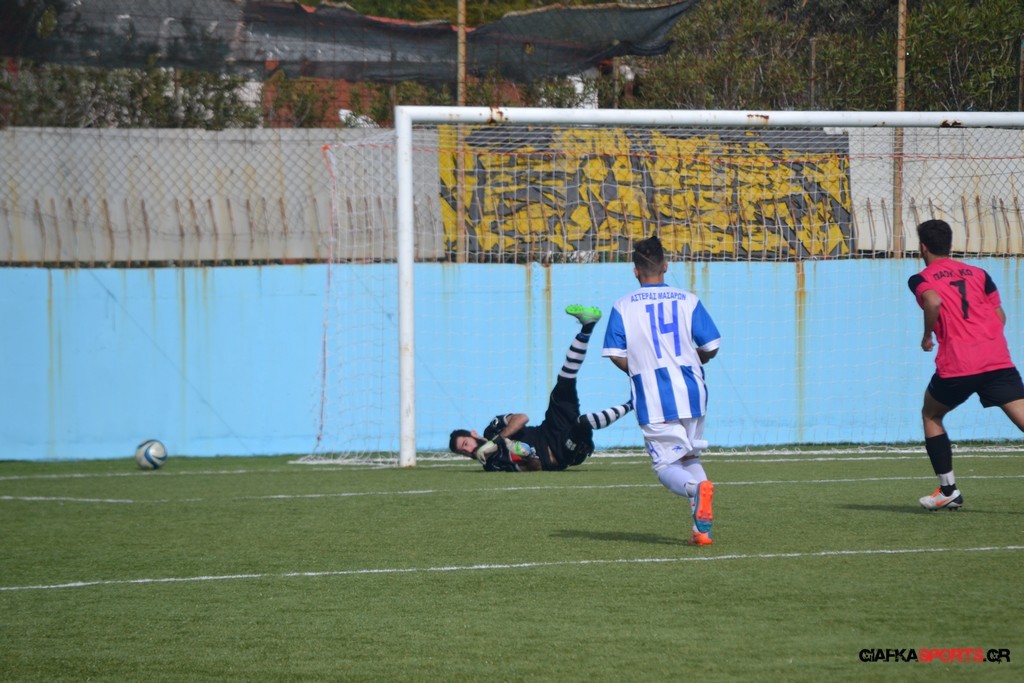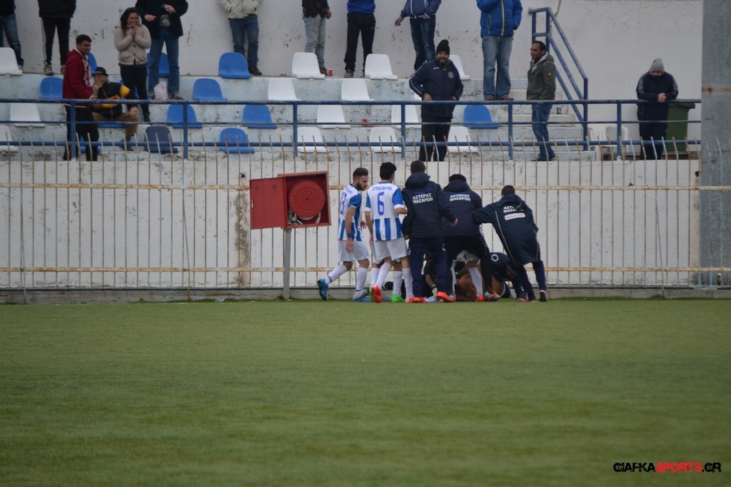 Ο Αστέρας έχασε ευκαιρία και στο 25′ με τον Λευτέρη Πλαγγέντη να σημαδεύει το αριστερό δοκάρι του Τυρά με τον ΠΑΟΚ Κω στο 32′ να απειλεί με δυνατό σουτ του Μικέ Ξυπολιτά με τον Τόππο να αποκρούει σε κόρνερ.