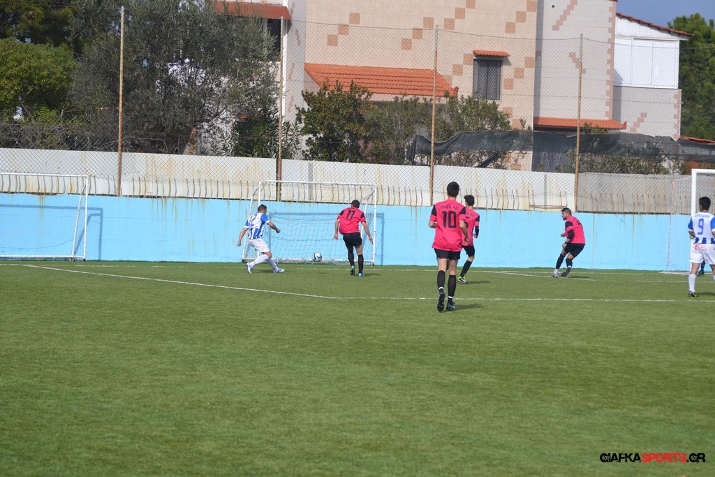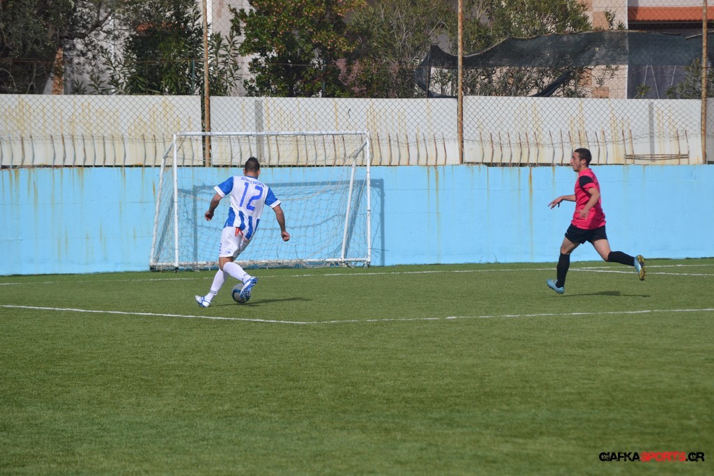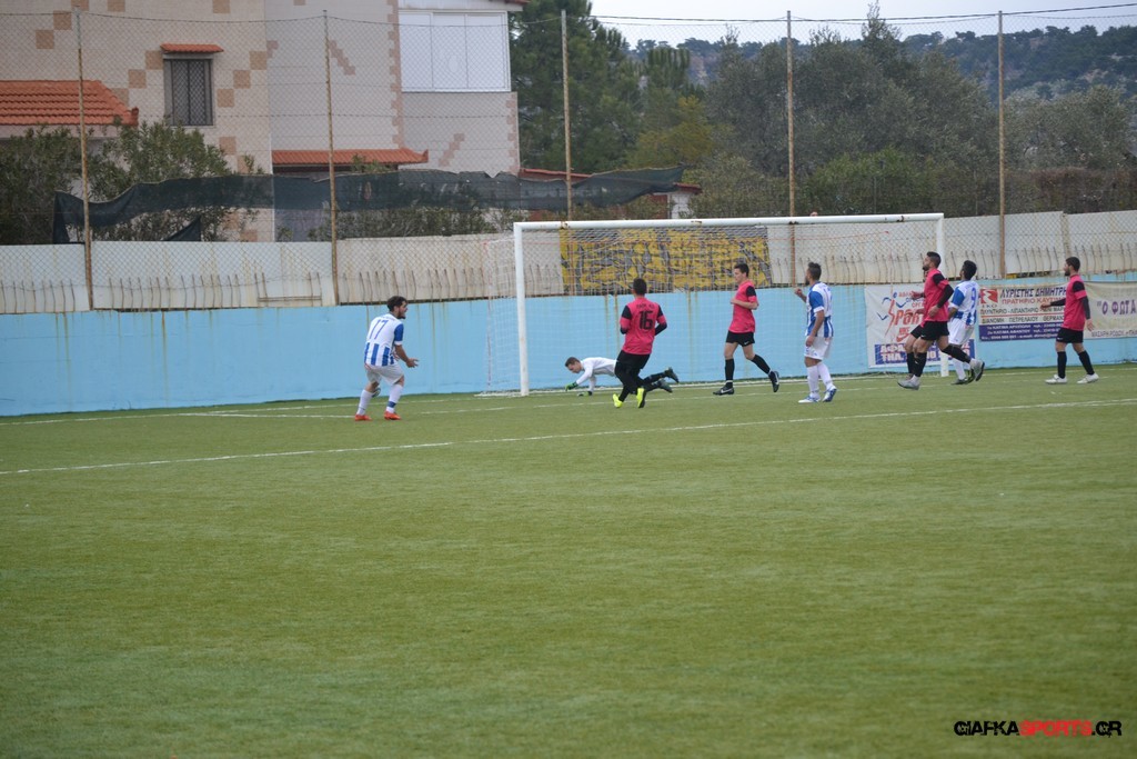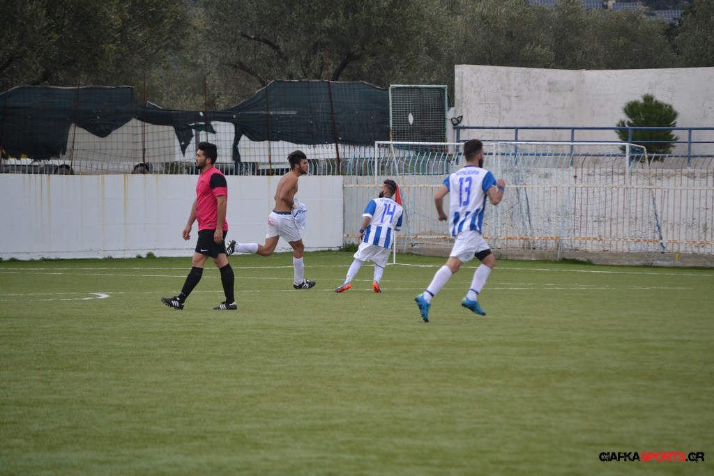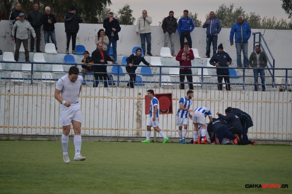 Πέντε λεπτά αργότερα πάντως οι γηπεδούχοι κατάφεραν να πάρουν προβάδισμα στο σκορ όταν μετά από πάσα του Πατσιαούρα ο Γιώργος Πλαγγέντης βγήκε στην πλάτη της άμυνας και πλάσαρε εύστοχα για το 1-0.