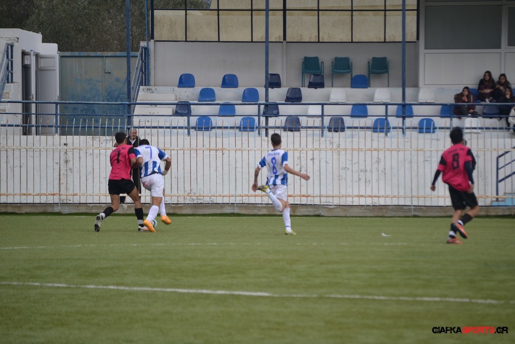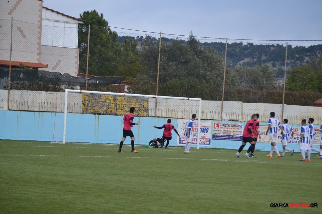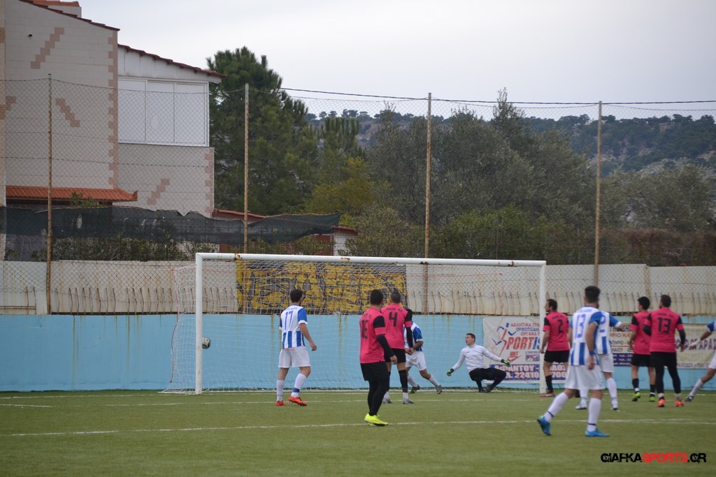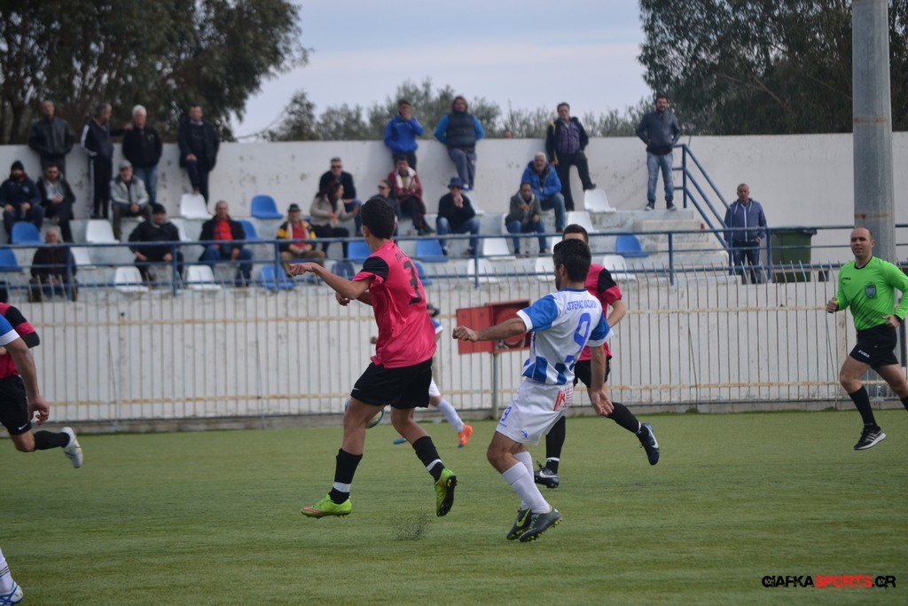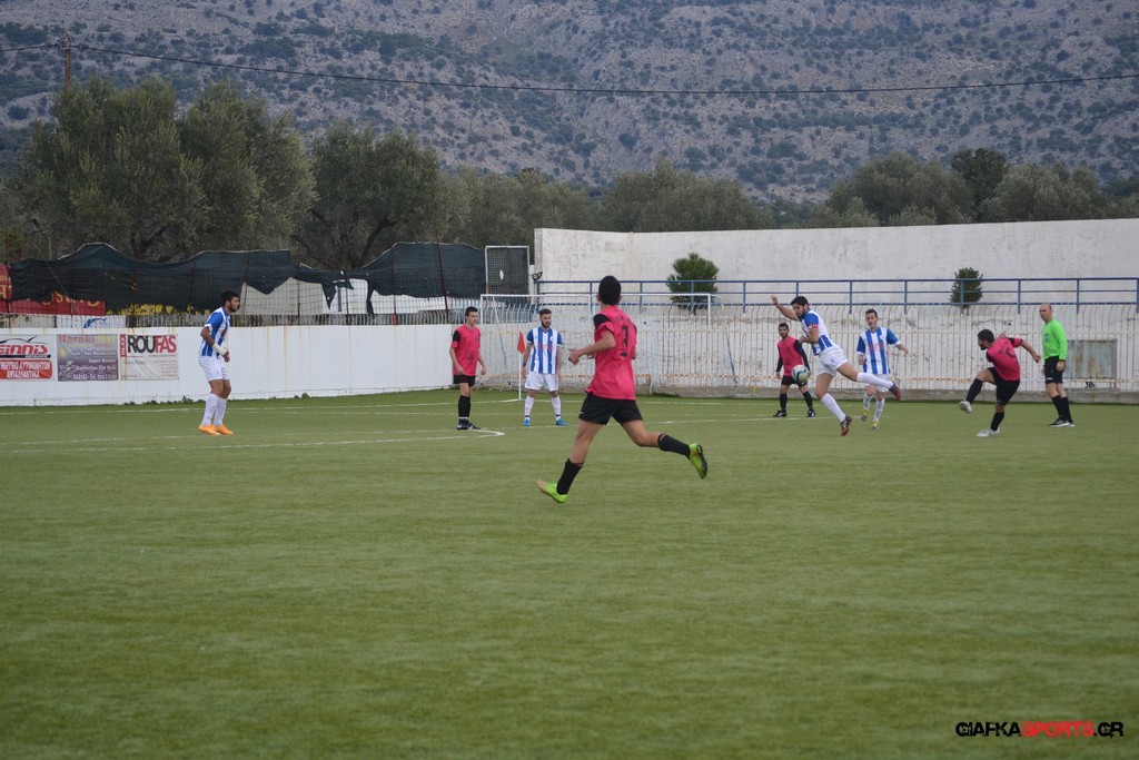 Πέντε λεπτά αργότερα πάντως οι γηπεδούχοι κατάφεραν να πάρουν προβάδισμα στο σκορ όταν μετά από πάσα του Πατσιαούρα ο Γιώργος Πλαγγέντης βγήκε στην πλάτη της άμυνας και πλάσαρε εύστοχα για το 1-0.