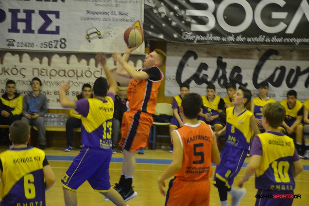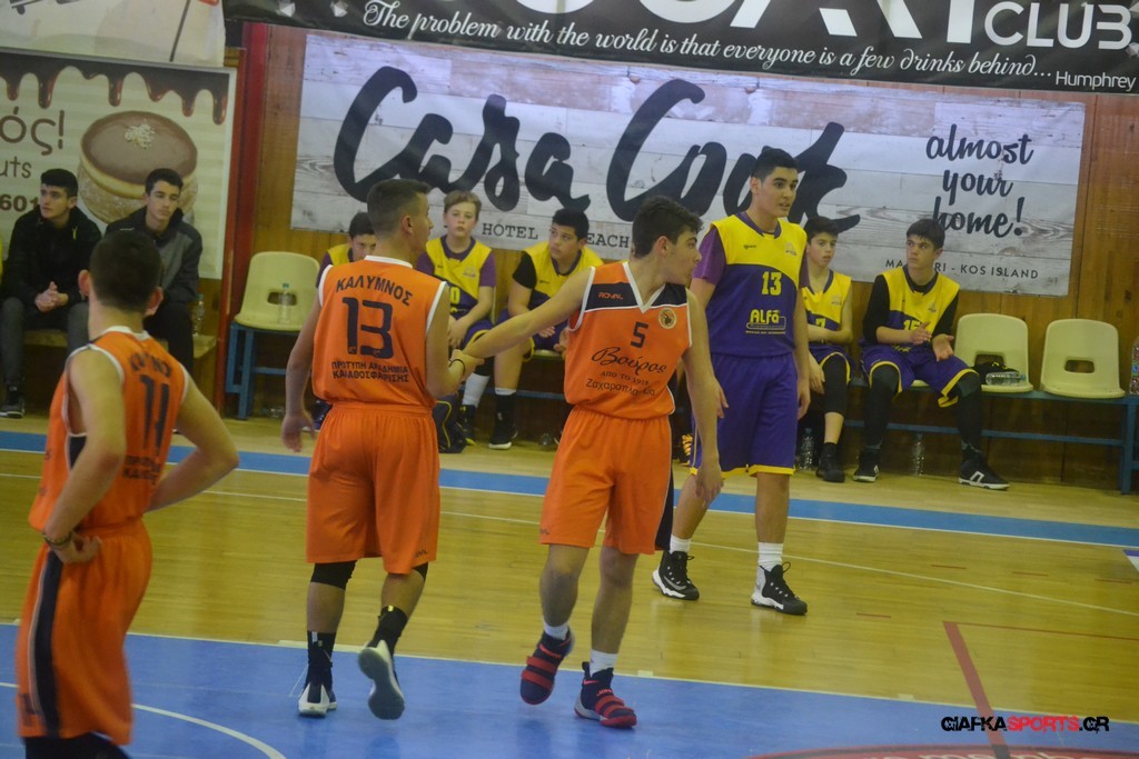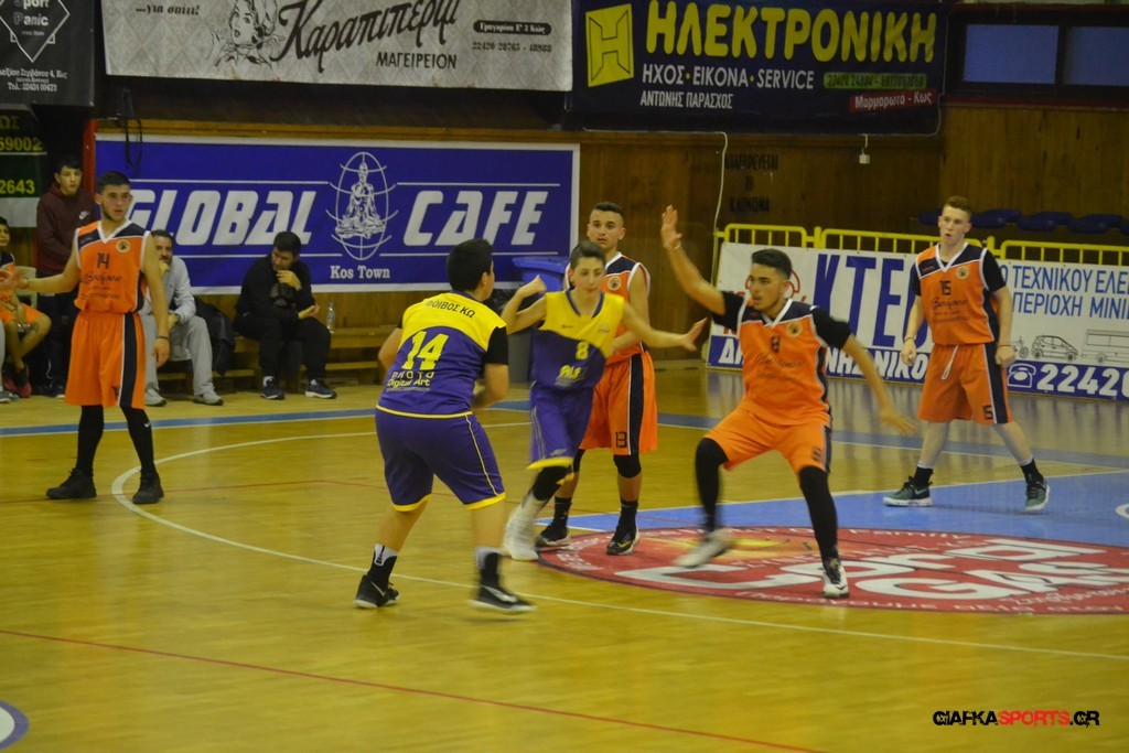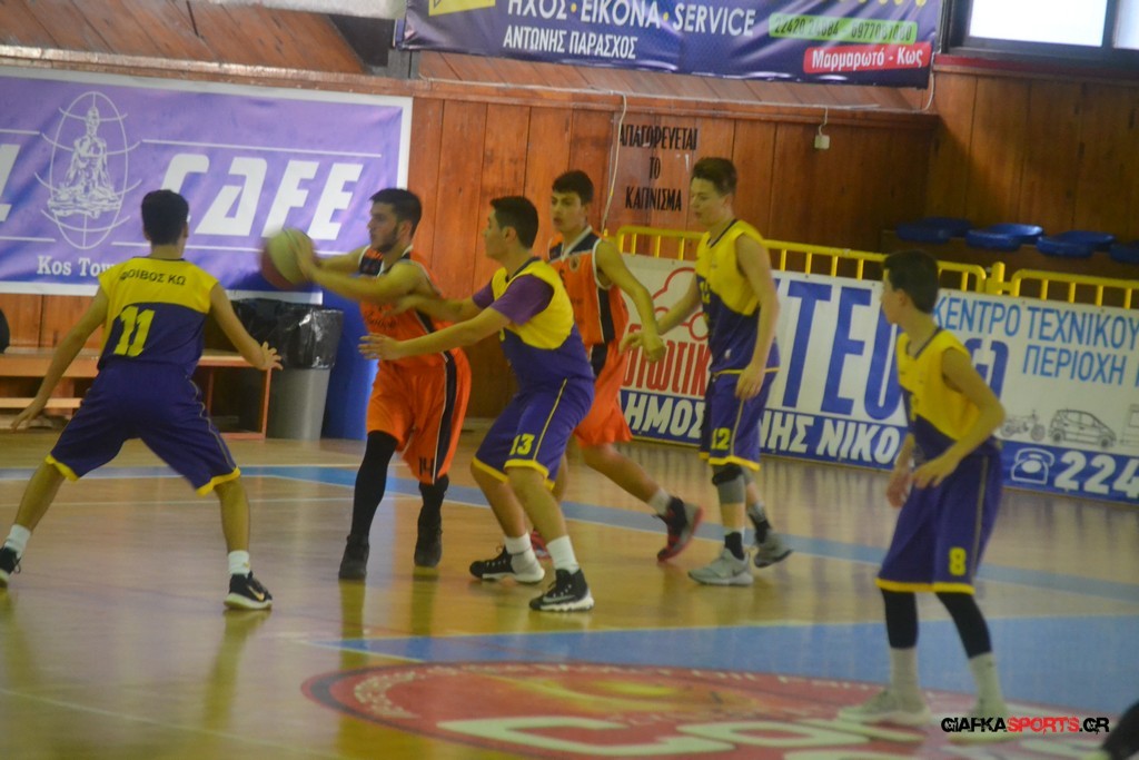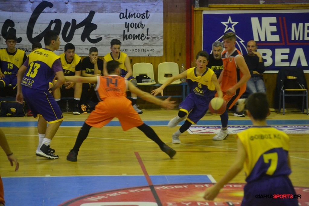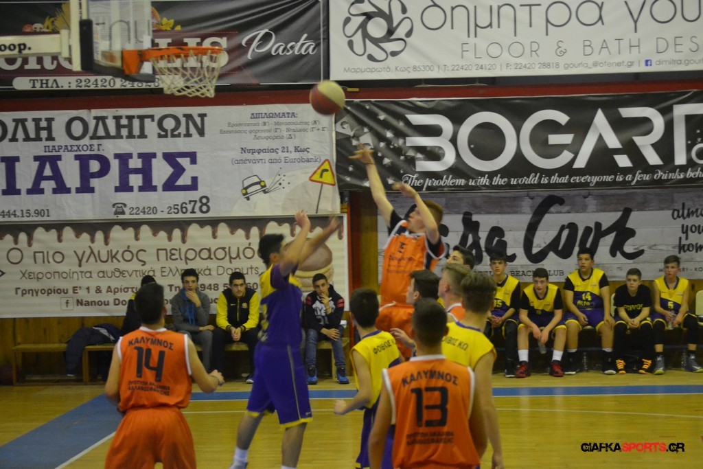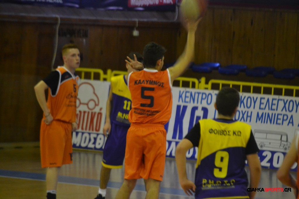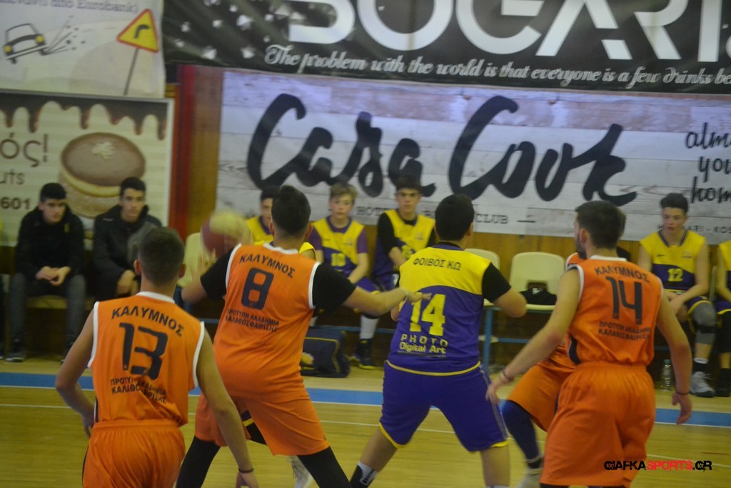 Μπορεί η ομάδα της Ακαδημίας Καλύμνου να ταξίδεψε με μόλις 6 παίκτες στην Κω αλλά κατάφερε εύκολα να επικρατήσει με 35-91 του Φοίβου Α’ και να συνεχίσει έτσι την πορεία της για το final-4 σε επίπεδο παμπαίδων. Σισώης (31π.), Λαμπρινός (20π.) και Τρικοίλης (20π.) ήταν αυτοί που έκαναν την διαφορά για τους φιλοξενούμενους ενώ από πλευράς Φοίβου πρώτος σκόρερ ηταν ο Κουζούκας με 19 πόντους.