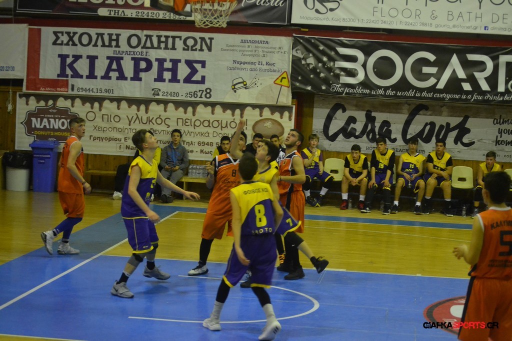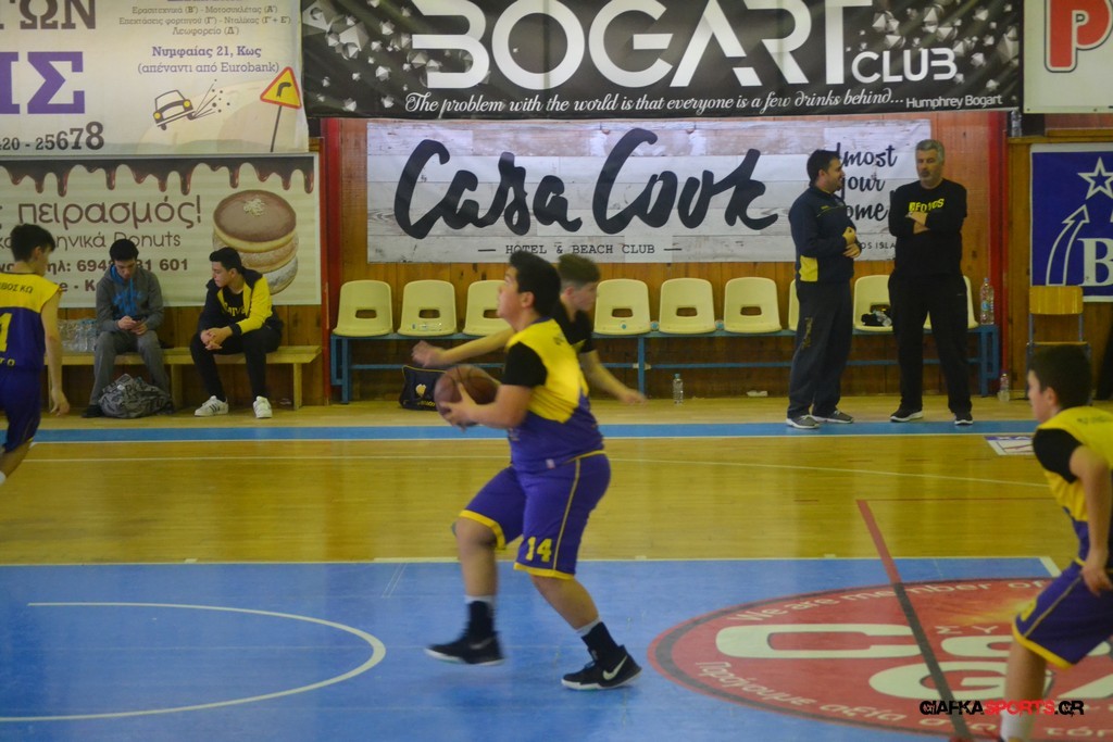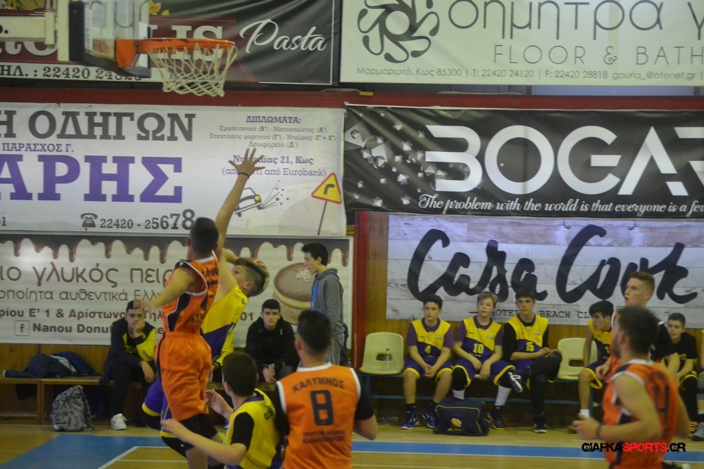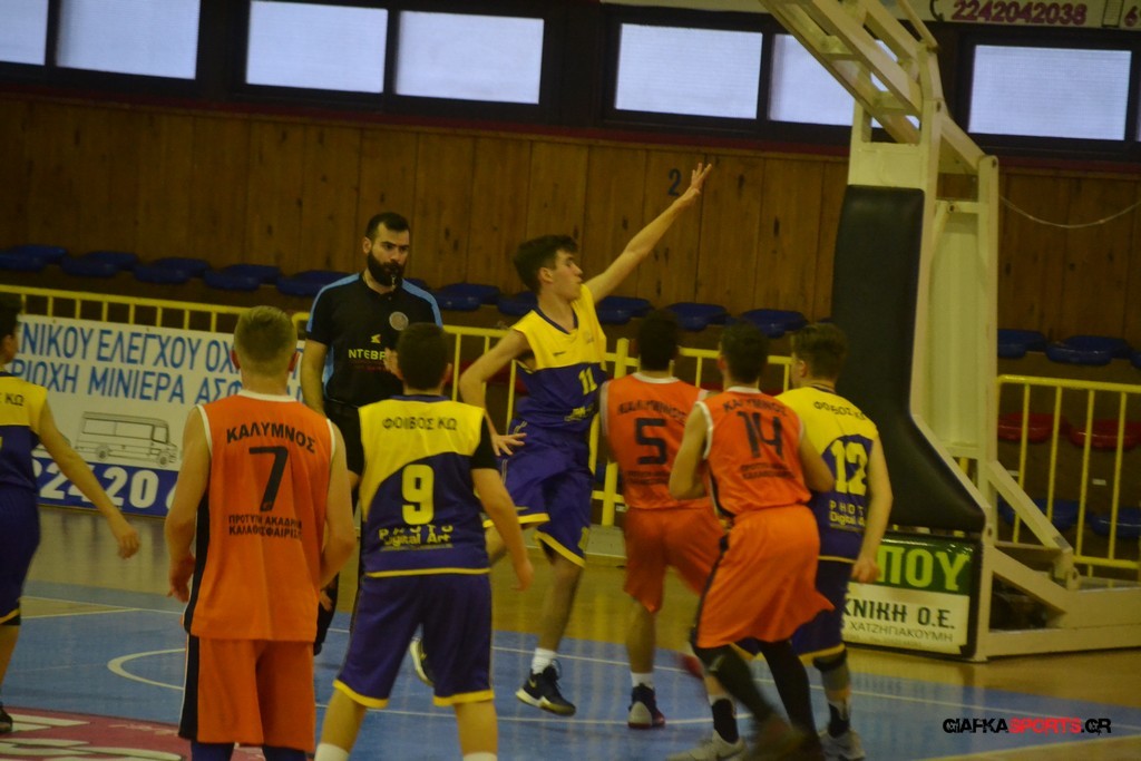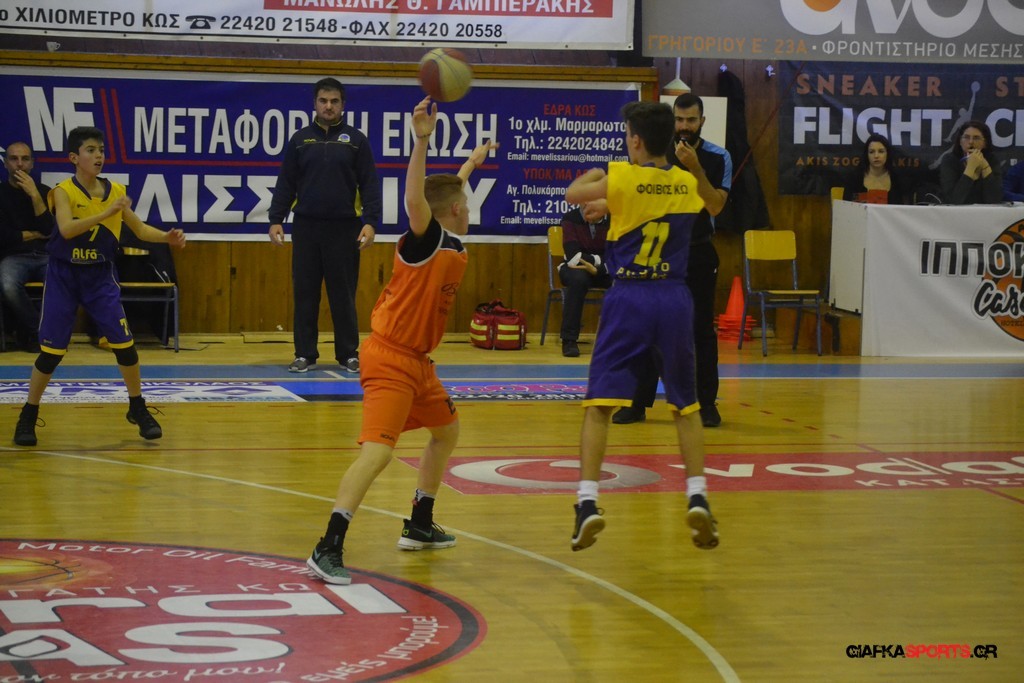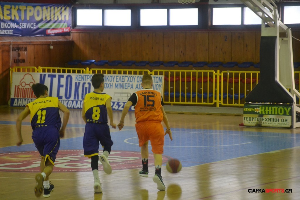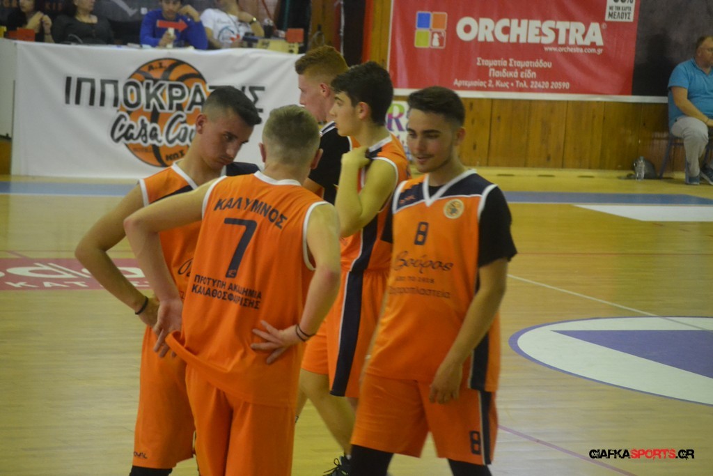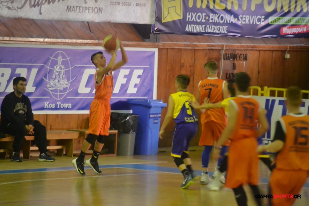 Μπορεί η ομάδα της Ακαδημίας Καλύμνου να ταξίδεψε με μόλις 6 παίκτες στην Κω αλλά κατάφερε εύκολα να επικρατήσει με 35-91 του Φοίβου Α’ και να συνεχίσει έτσι την πορεία της για το final-4 σε επίπεδο παμπαίδων. Σισώης (31π.), Λαμπρινός (20π.) και Τρικοίλης (20π.) ήταν αυτοί που έκαναν την διαφορά για τους φιλοξενούμενους ενώ από πλευράς Φοίβου πρώτος σκόρερ ηταν ο Κουζούκας με 19 πόντους.