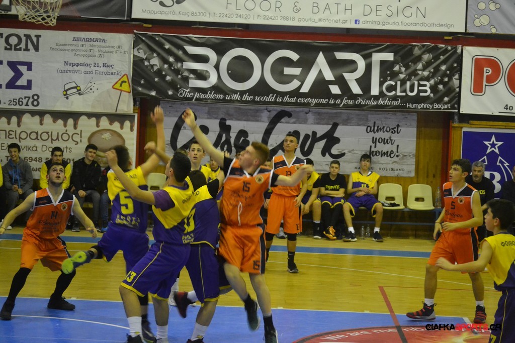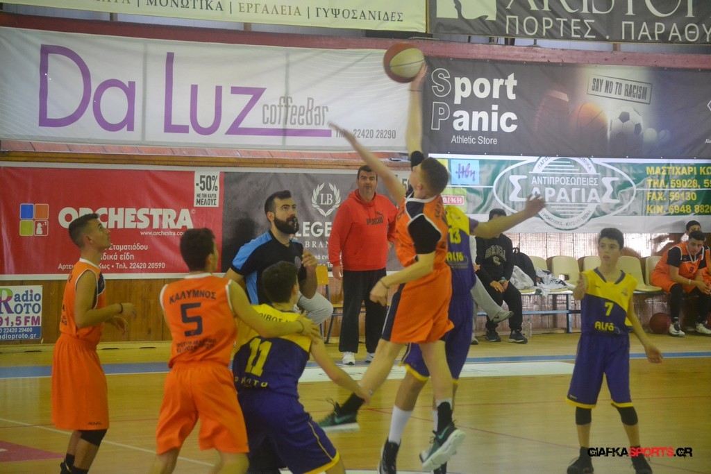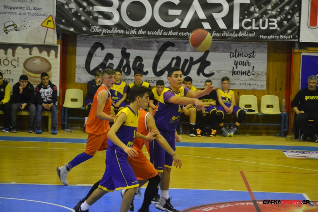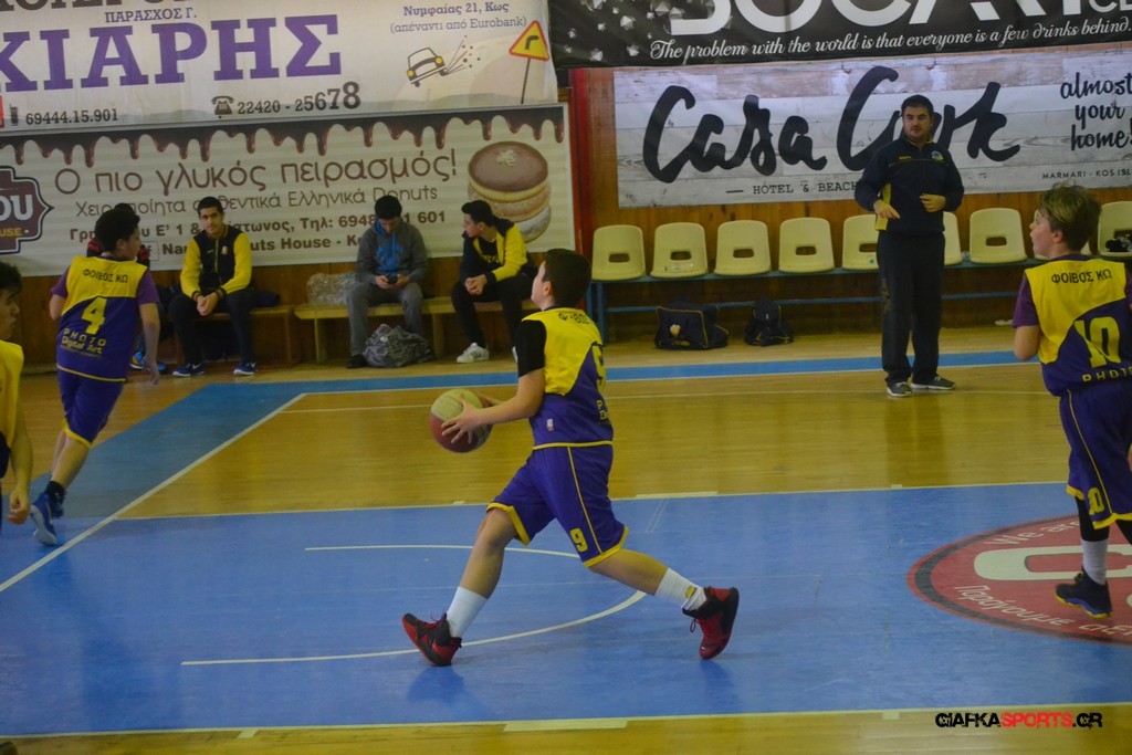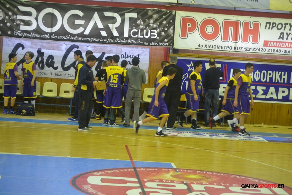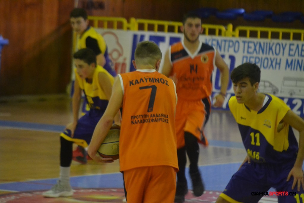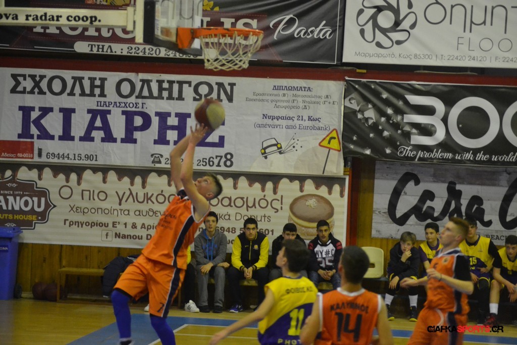 Μπορεί η ομάδα της Ακαδημίας Καλύμνου να ταξίδεψε με μόλις 6 παίκτες στην Κω αλλά κατάφερε εύκολα να επικρατήσει με 35-91 του Φοίβου Α’ και να συνεχίσει έτσι την πορεία της για το final-4 σε επίπεδο παμπαίδων. Σισώης (31π.), Λαμπρινός (20π.) και Τρικοίλης (20π.) ήταν αυτοί που έκαναν την διαφορά για τους φιλοξενούμενους ενώ από πλευράς Φοίβου πρώτος σκόρερ ηταν ο Κουζούκας με 19 πόντους.