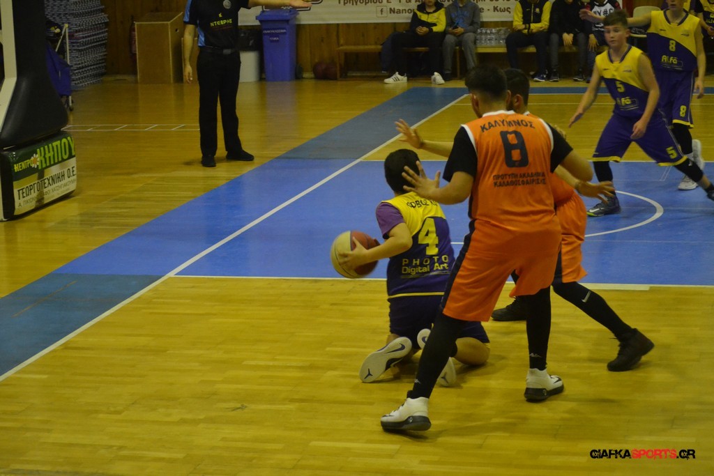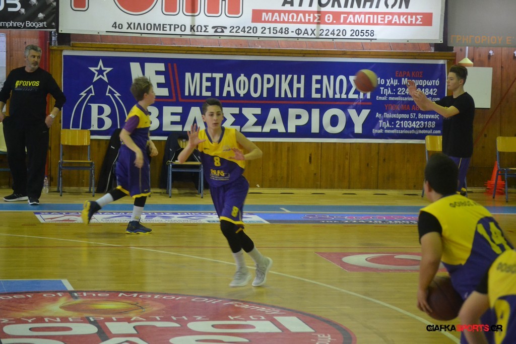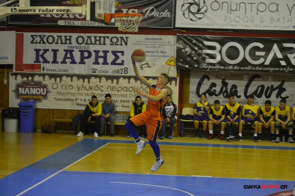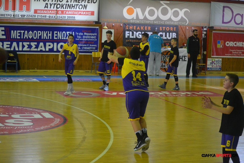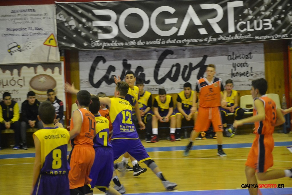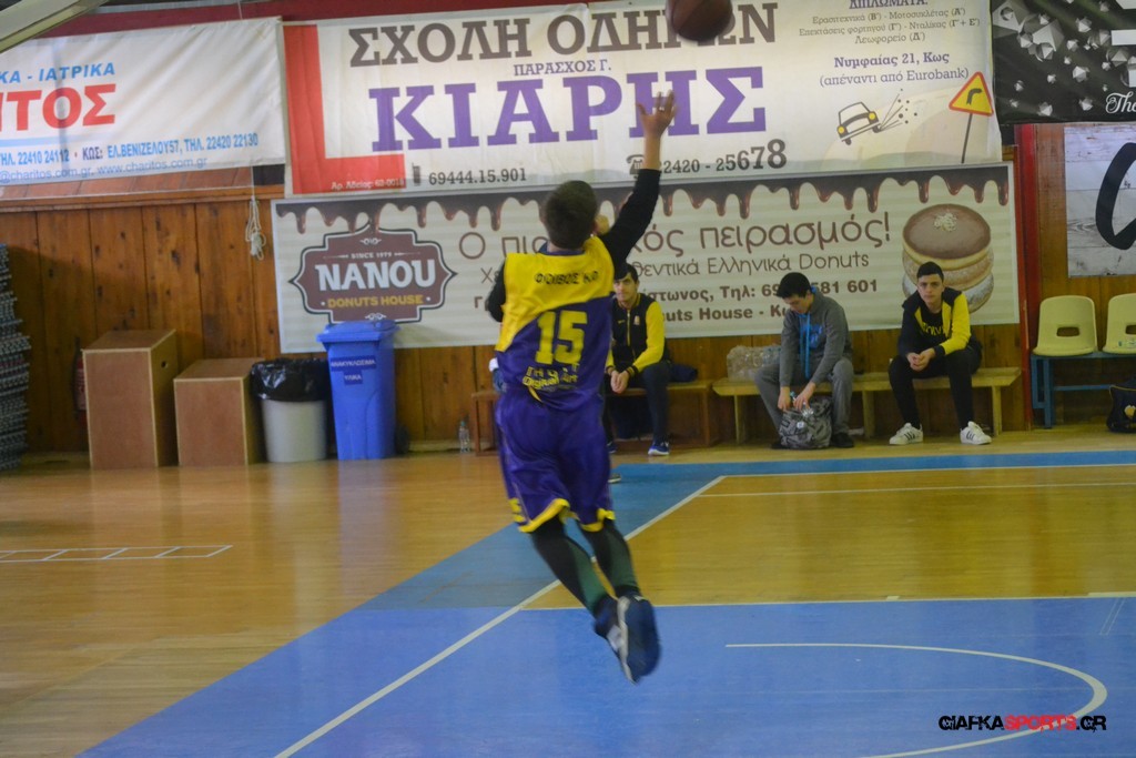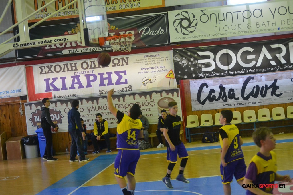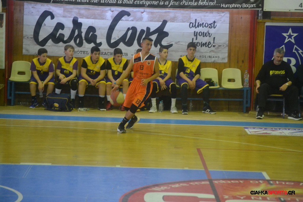 Μπορεί η ομάδα της Ακαδημίας Καλύμνου να ταξίδεψε με μόλις 6 παίκτες στην Κω αλλά κατάφερε εύκολα να επικρατήσει με 35-91 του Φοίβου Α’ και να συνεχίσει έτσι την πορεία της για το final-4 σε επίπεδο παμπαίδων. Σισώης (31π.), Λαμπρινός (20π.) και Τρικοίλης (20π.) ήταν αυτοί που έκαναν την διαφορά για τους φιλοξενούμενους ενώ από πλευράς Φοίβου πρώτος σκόρερ ηταν ο Κουζούκας με 19 πόντους.