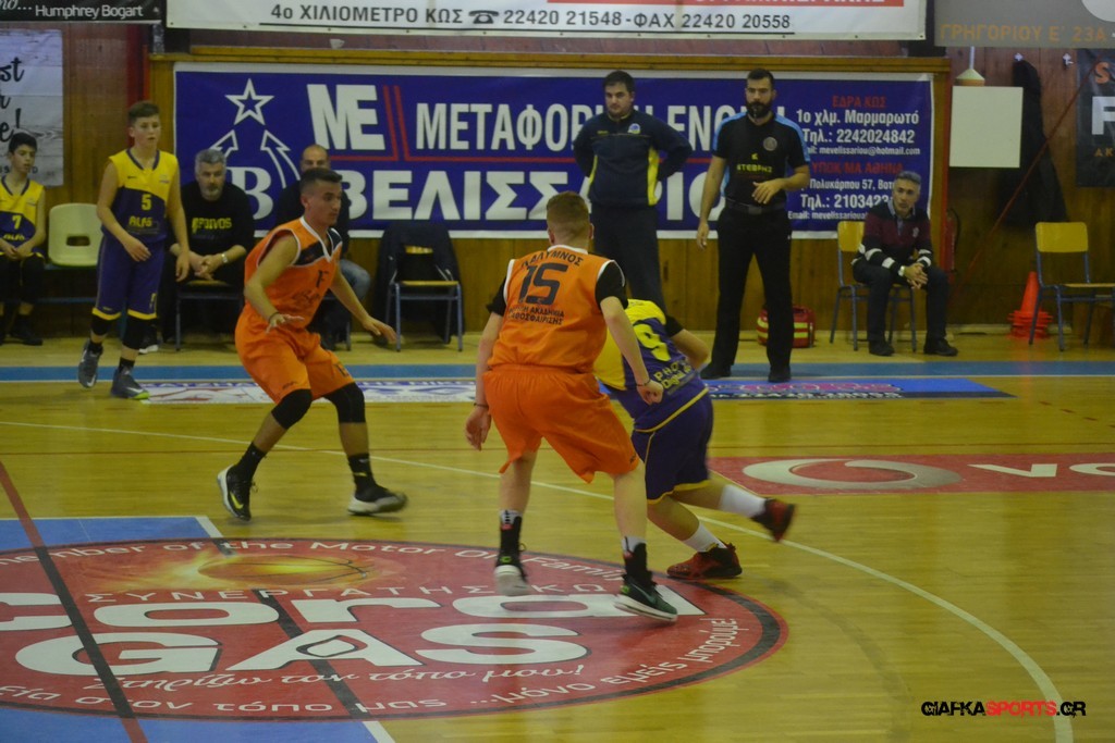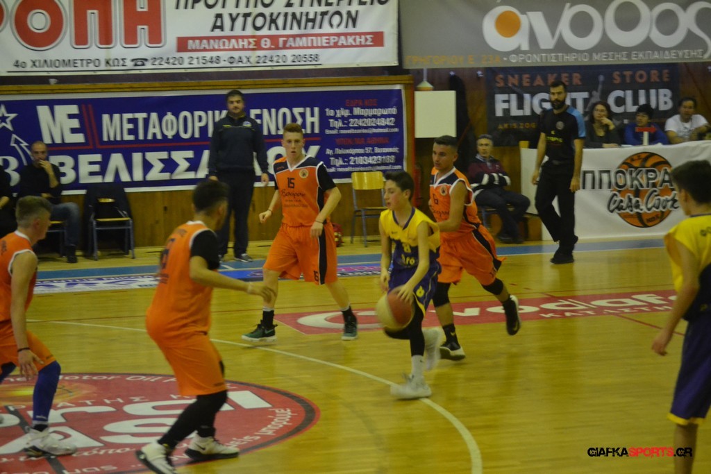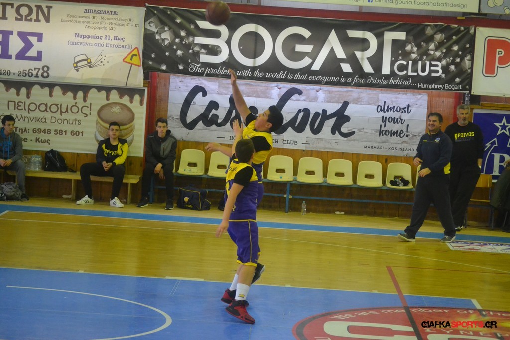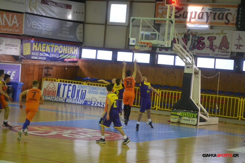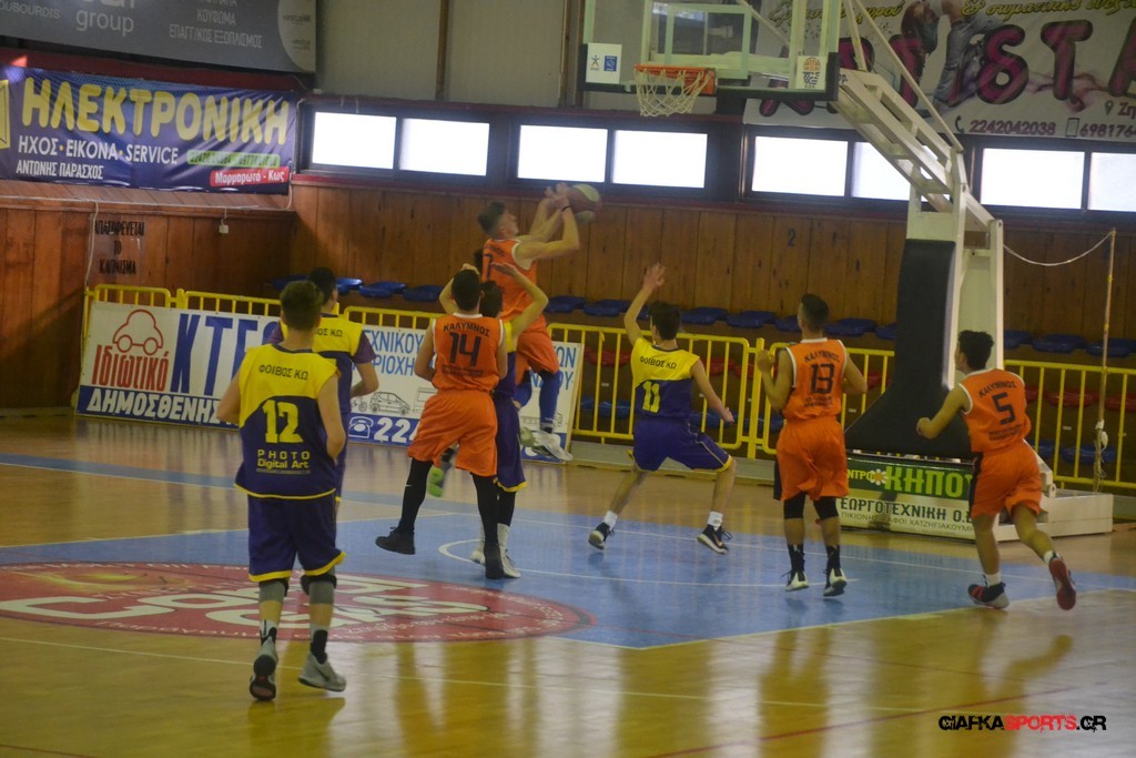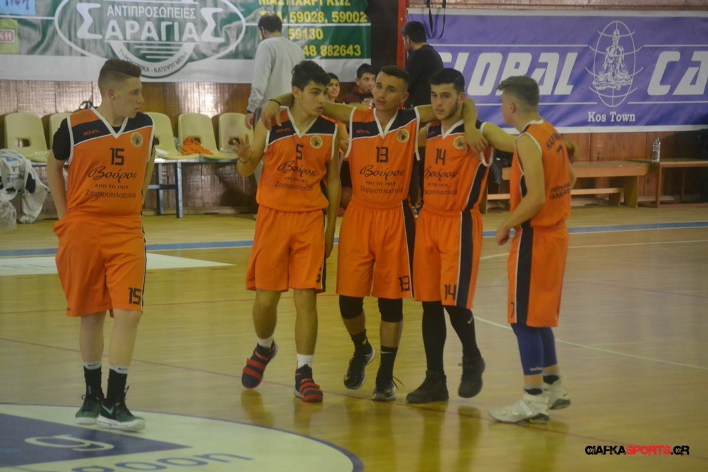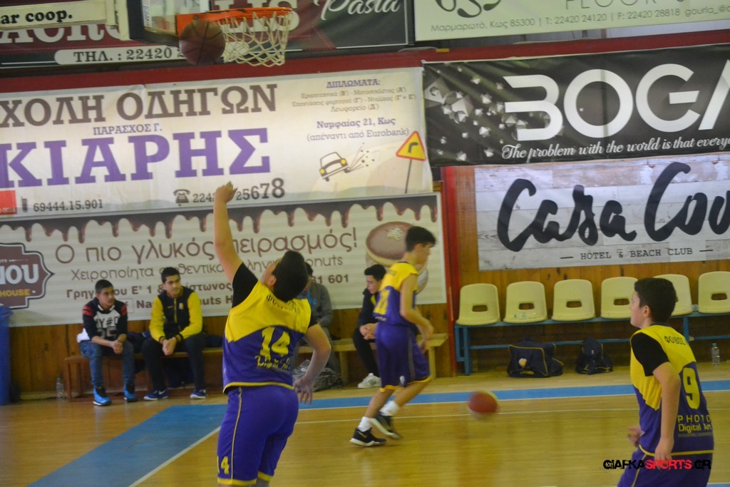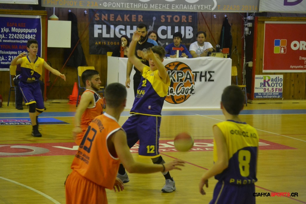 Μπορεί η ομάδα της Ακαδημίας Καλύμνου να ταξίδεψε με μόλις 6 παίκτες στην Κω αλλά κατάφερε εύκολα να επικρατήσει με 35-91 του Φοίβου Α’ και να συνεχίσει έτσι την πορεία της για το final-4 σε επίπεδο παμπαίδων. Σισώης (31π.), Λαμπρινός (20π.) και Τρικοίλης (20π.) ήταν αυτοί που έκαναν την διαφορά για τους φιλοξενούμενους ενώ από πλευράς Φοίβου πρώτος σκόρερ ηταν ο Κουζούκας με 19 πόντους.