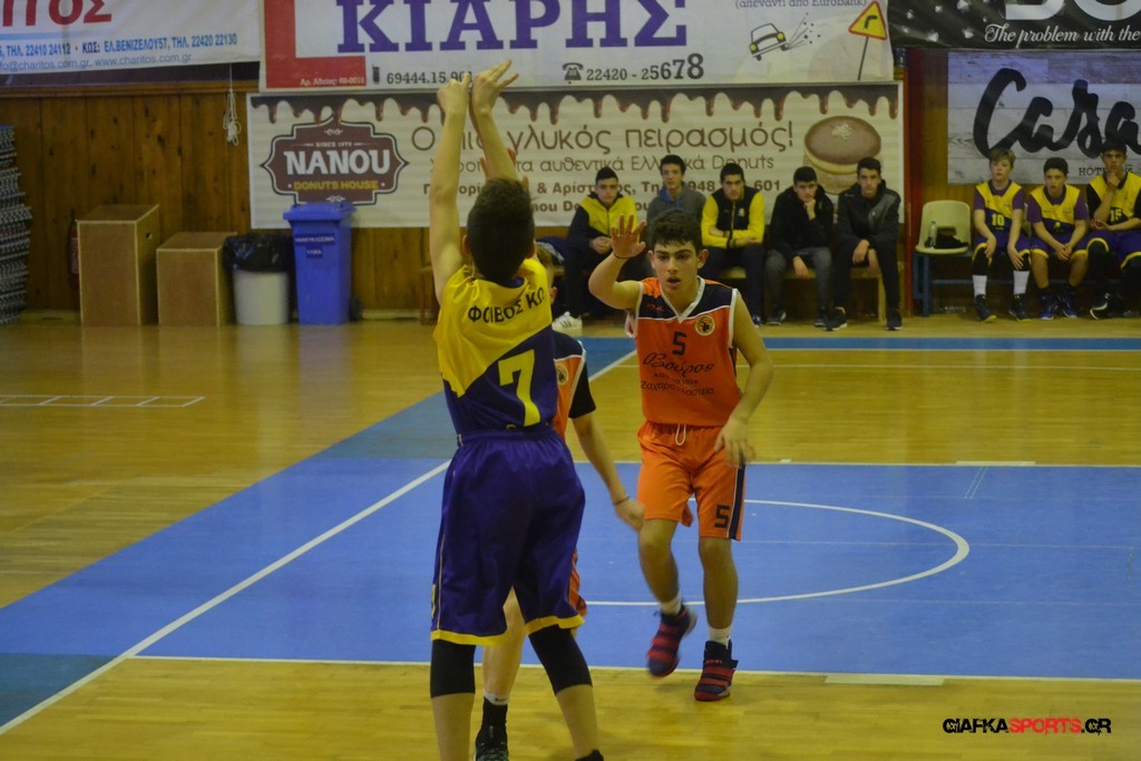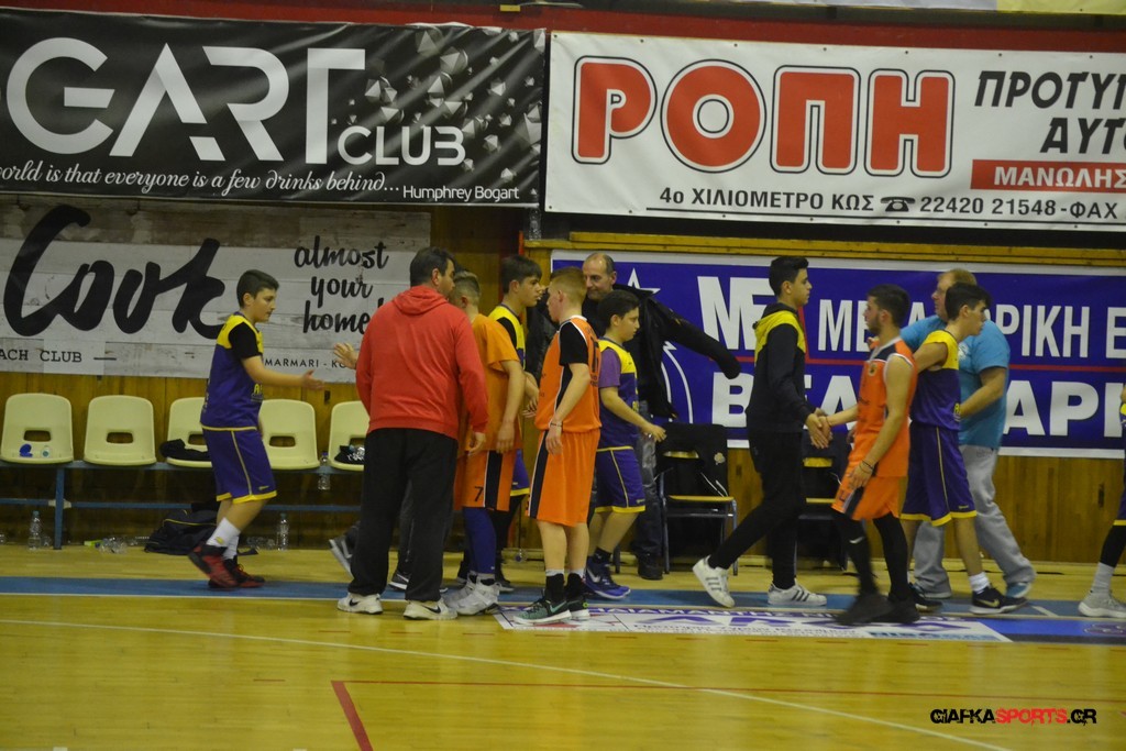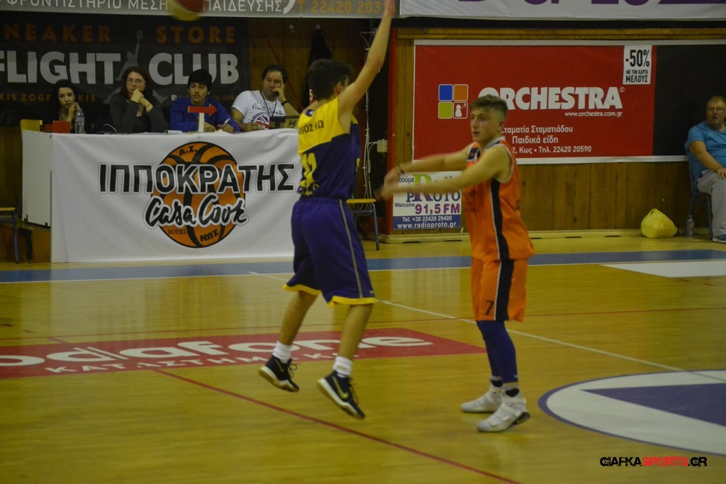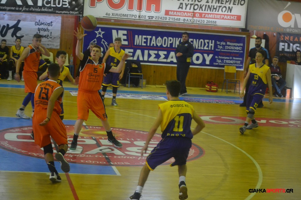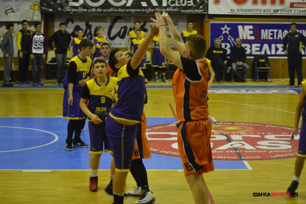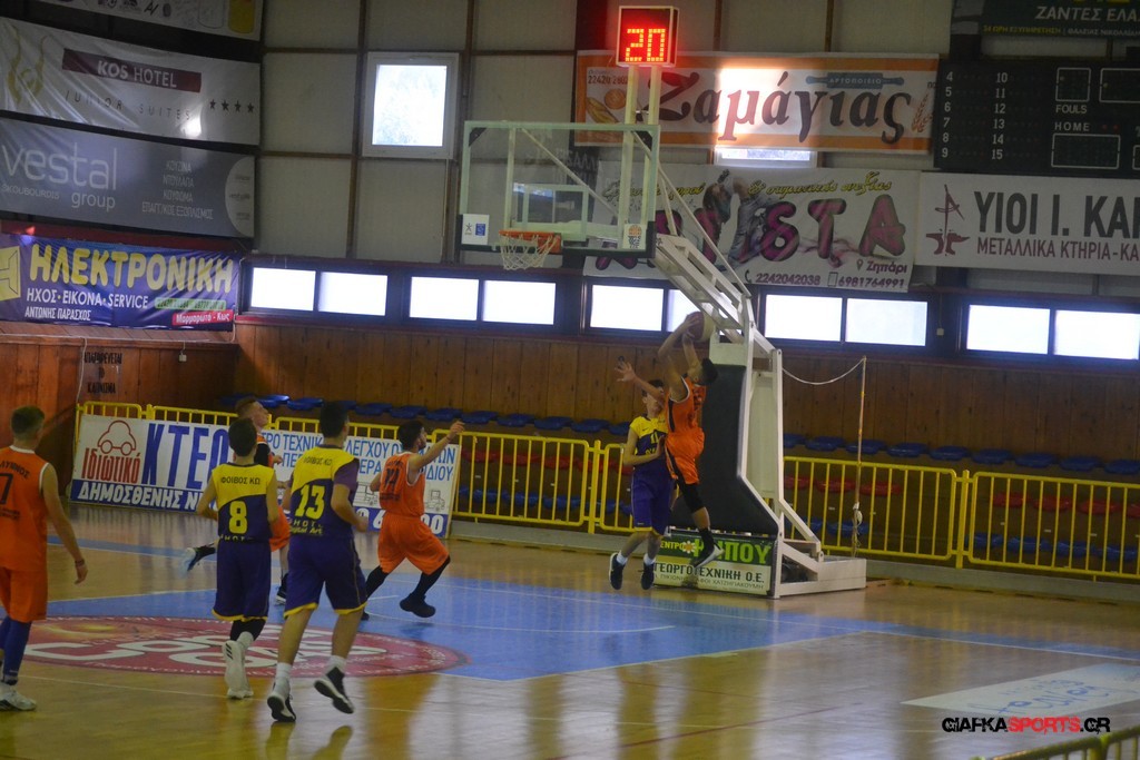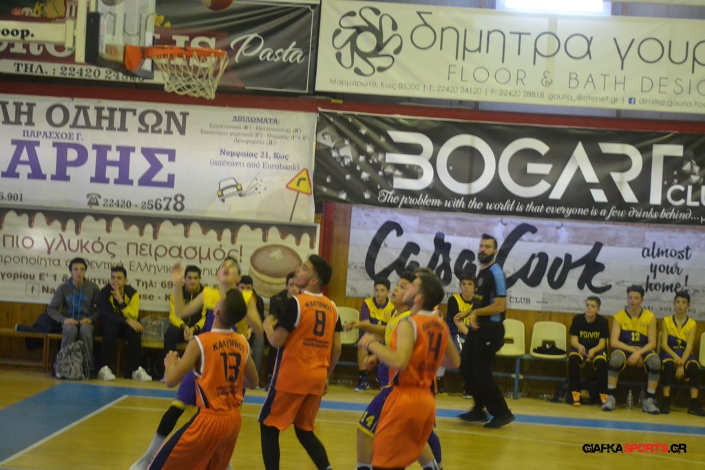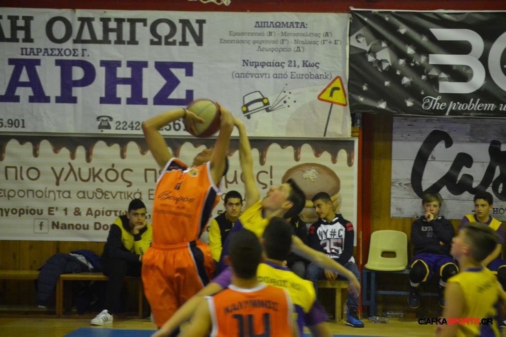 Μπορεί η ομάδα της Ακαδημίας Καλύμνου να ταξίδεψε με μόλις 6 παίκτες στην Κω αλλά κατάφερε εύκολα να επικρατήσει με 35-91 του Φοίβου Α’ και να συνεχίσει έτσι την πορεία της για το final-4 σε επίπεδο παμπαίδων. Σισώης (31π.), Λαμπρινός (20π.) και Τρικοίλης (20π.) ήταν αυτοί που έκαναν την διαφορά για τους φιλοξενούμενους ενώ από πλευράς Φοίβου πρώτος σκόρερ ηταν ο Κουζούκας με 19 πόντους.