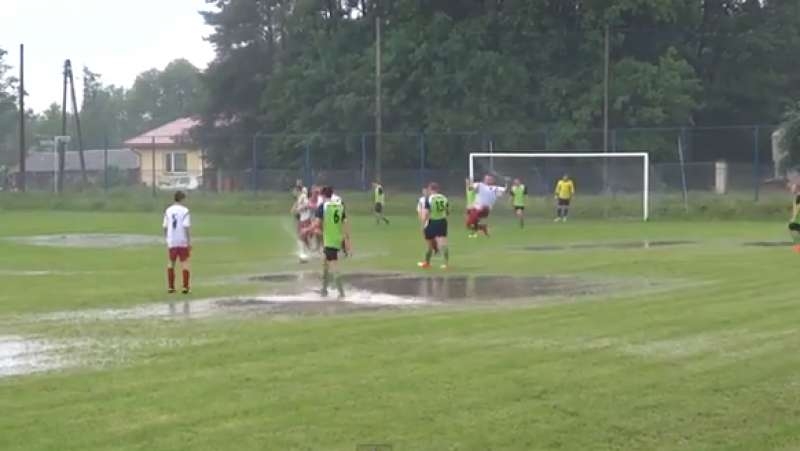 Σ’ένα ματς ερασιτεχνών στην βροχερή Πολωνία ο κύριος που βλέπετε χάρηκε τόσο πολύ για το γκολ της ομάδας του και γυρνώντας προς τη σέντρα είπε να κάνει μια μεγαλοπρεπή βουτιά στη λίμνη του γηπέδου για να πανηγυρίσει το γκολ!