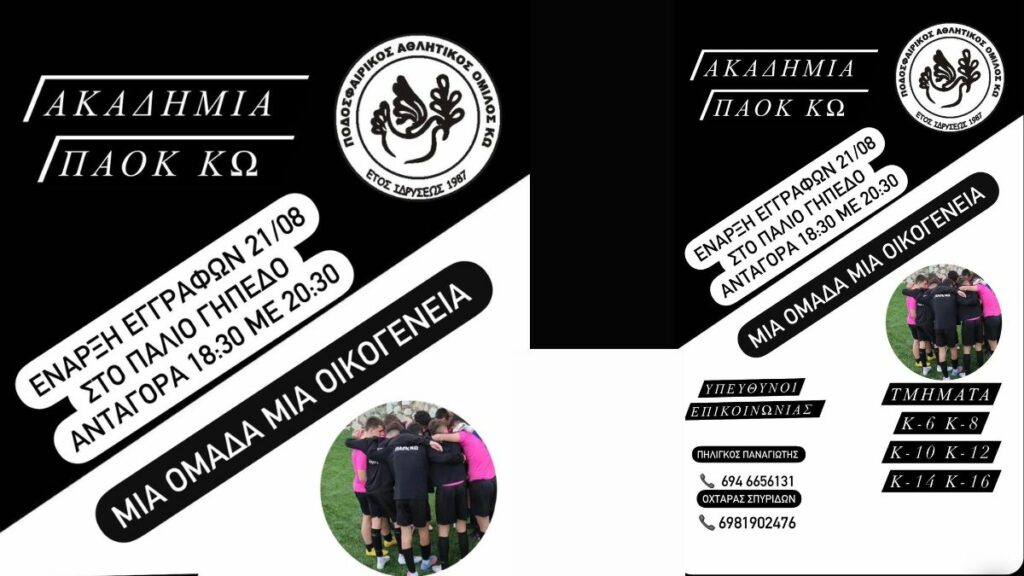Home » ΠΑΟΚ Κω: Έναρξη εγγραφών για τις ακαδημίες απ’ τις 21 Αυγούστου